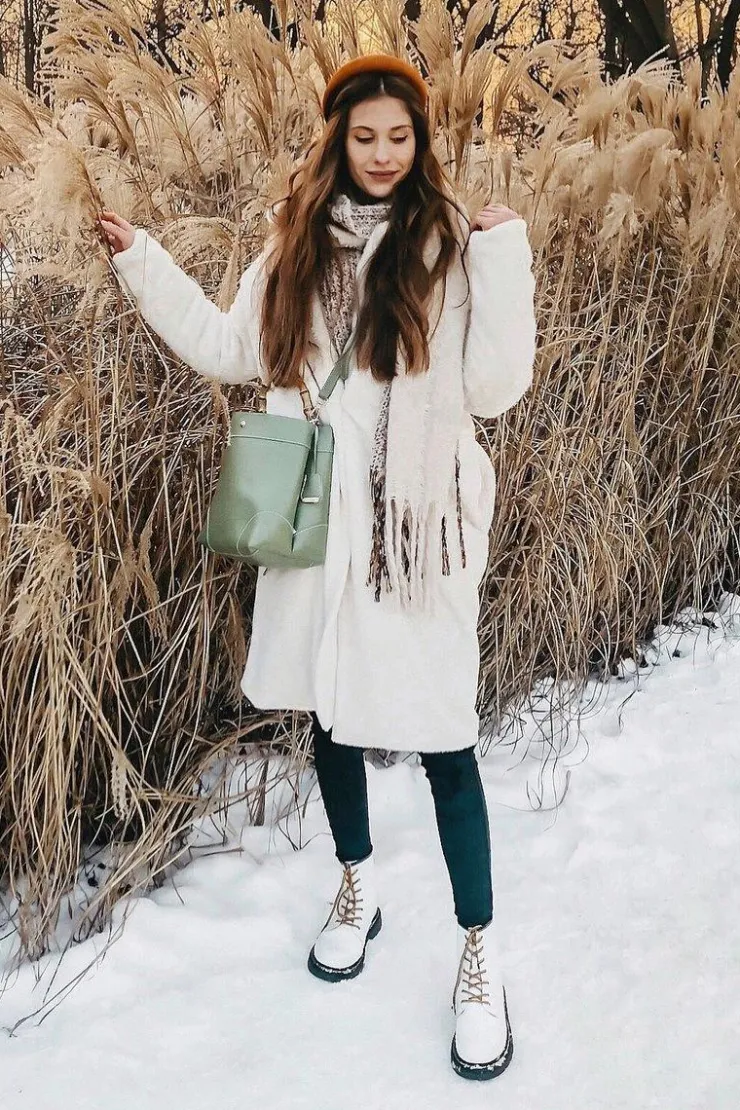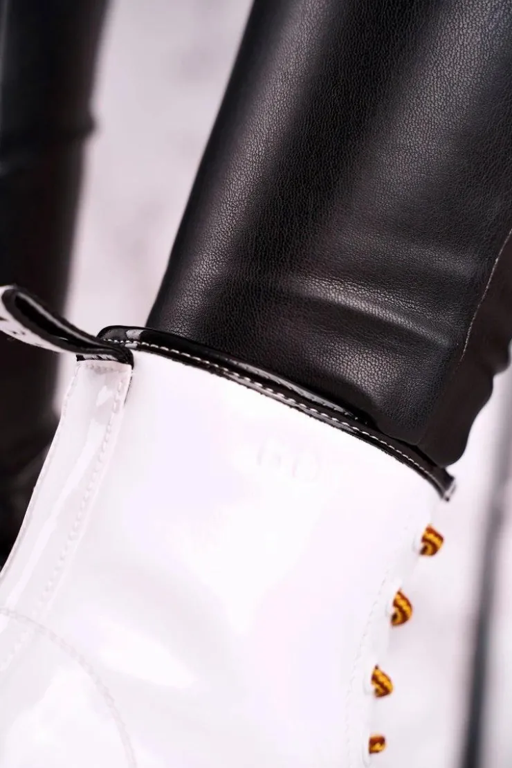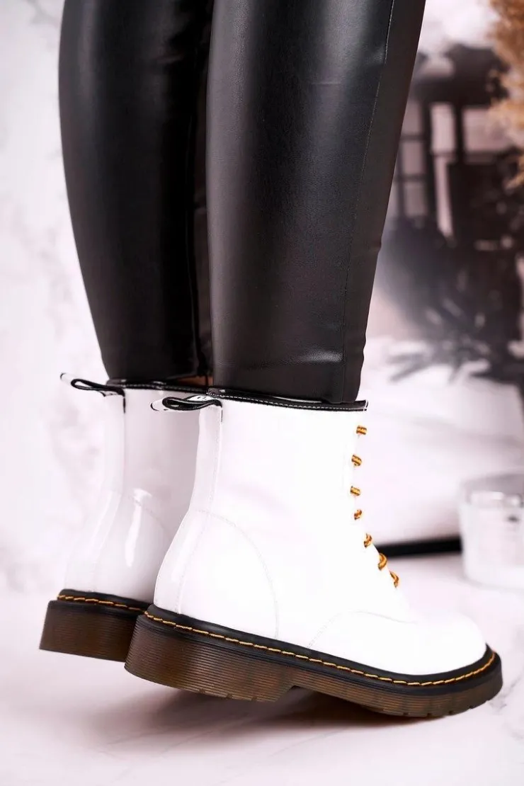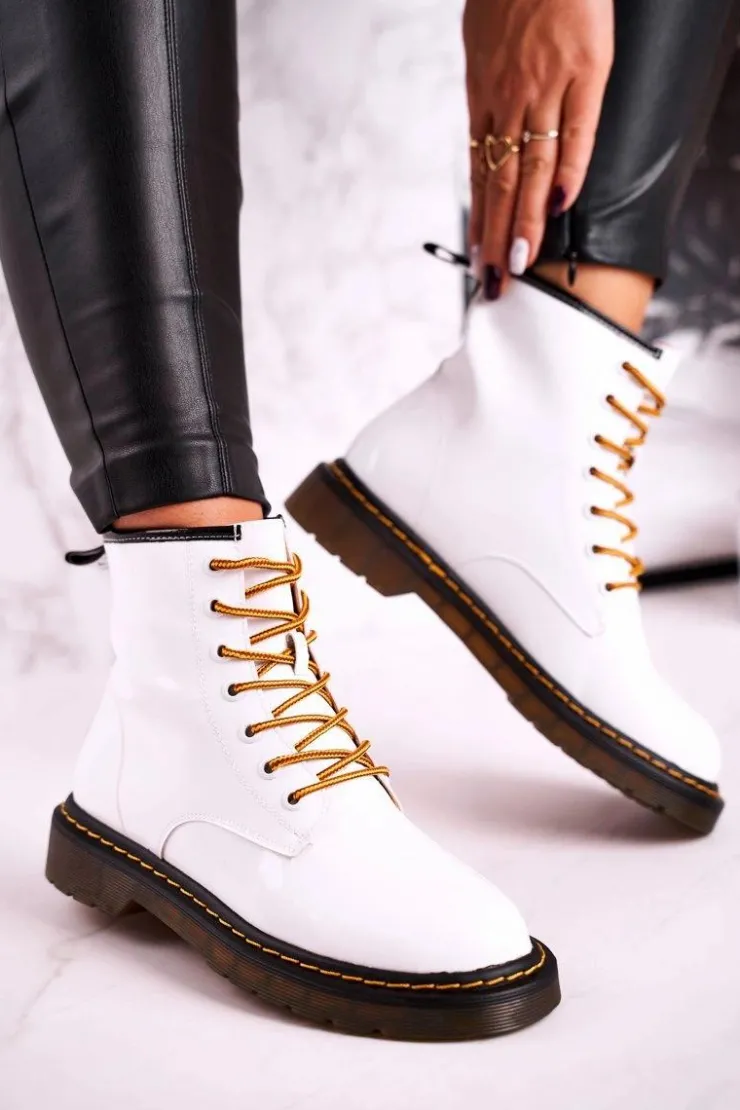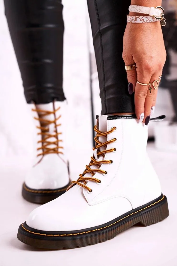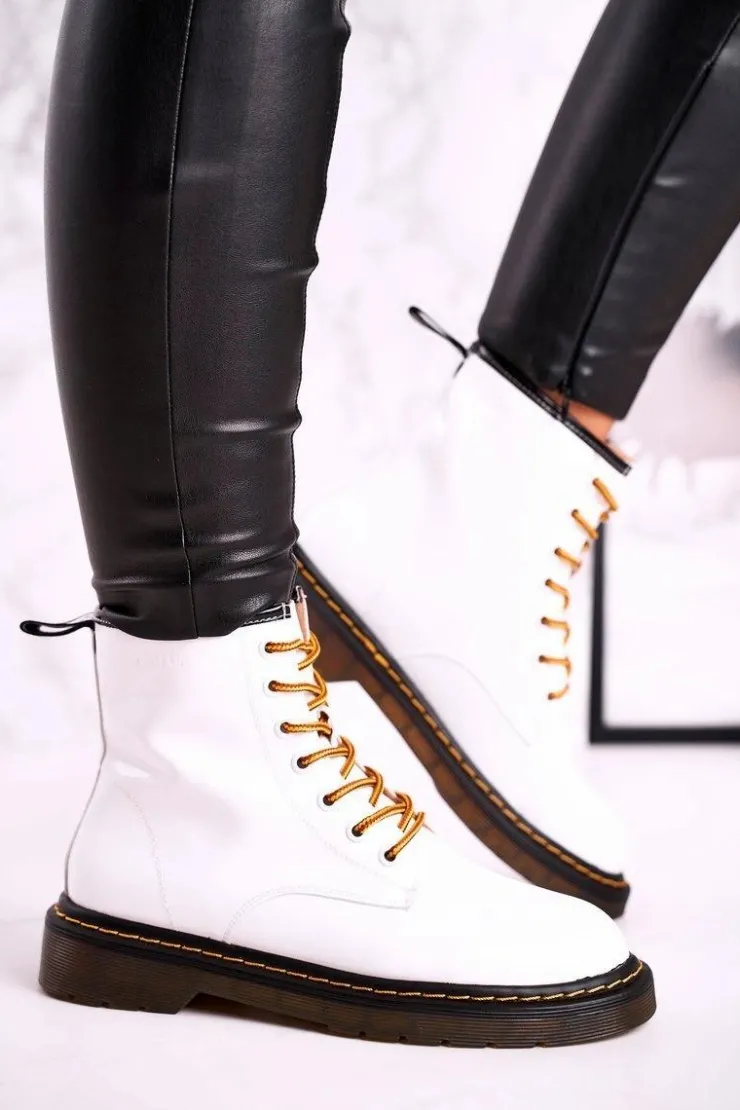 Damskie GOE Damskie Botki Trapery Glany Skórzane Białe GG2N3057A