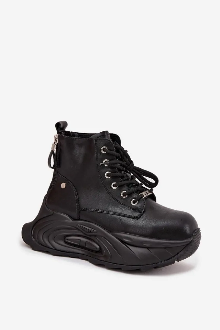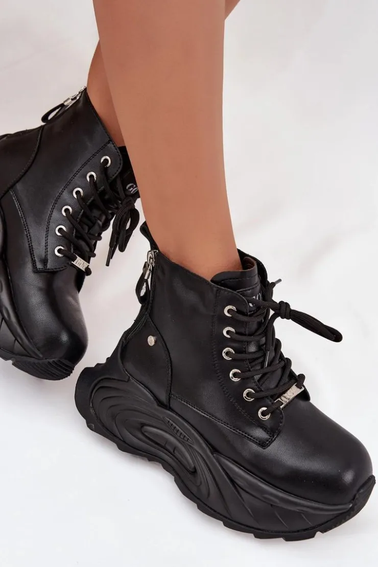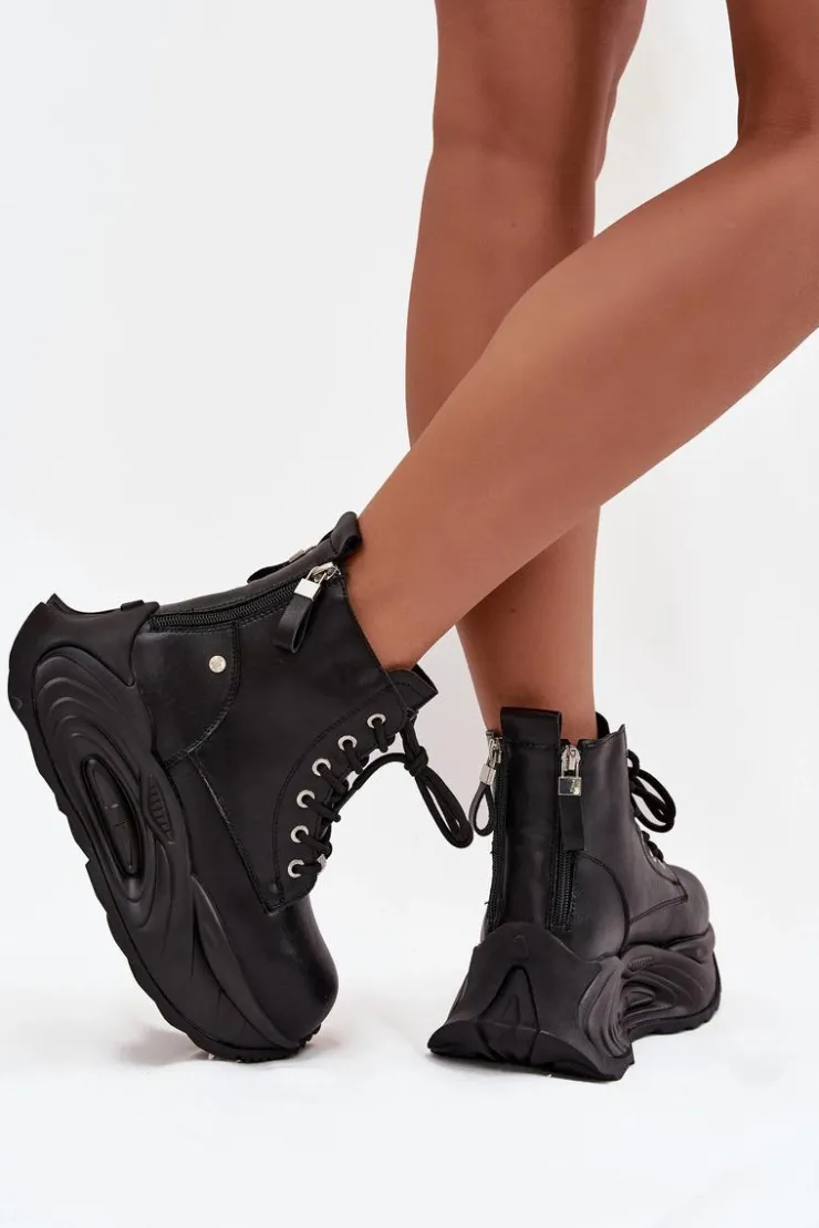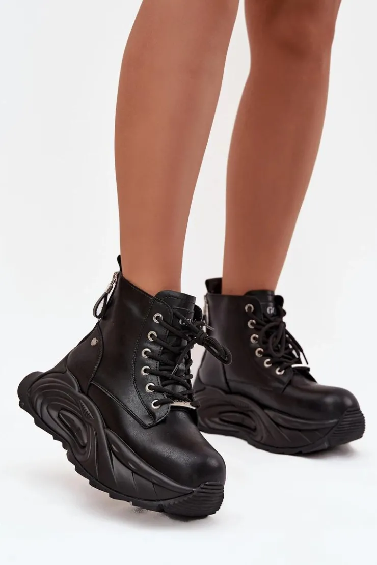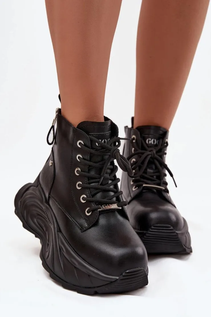 Botki damskie GOE to propozycja dla kobiet, które cenią nowoczesny styl i wygodę. Wykonane z wysokiej jakości naturalnej skóry, prezentują się elegancko i są wyjątkowo trwałe. Osadzone na masywnej platformie, dodają sylwetce charakteru i świetnie wpisują się w aktualne trendy. Model jest sznurowany, a dodatkowo posiada dwa suwaki z tyłu po bokach, co ułatwia zakładanie i podkreśla jego oryginalny design. To idealne buty na co dzień, które doskonale dopełnią zarówno casualowe, jak i bardziej wyraziste stylizacje. Przy wyborze rozmiaru prosimy kierować się tabelą rozmiarów