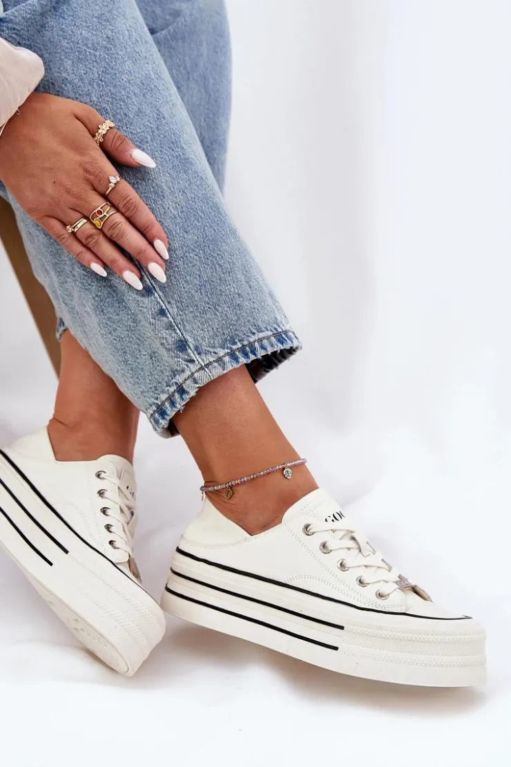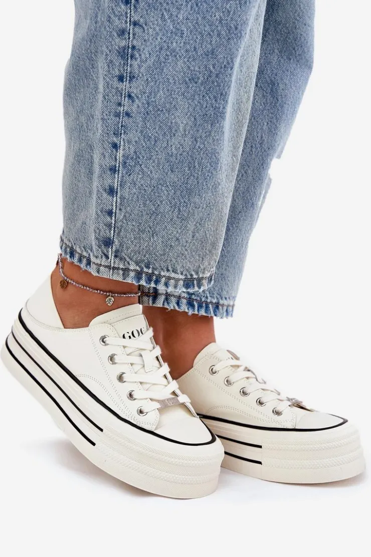 Trampki damskie od marki GOE. Wykonane z wysokiej jakości skóry naturalnej. Osadzone na masywnej platformie, zapewniają komfort i stabilność, jednocześnie dodając lekkości sylwetce. Miękka wkładka dba o komfort przez cały dzień. Te trampki to doskonały wybór do codziennych stylizacji! Przy wyborze rozmiaru prosimy sugerować się tabelą rozmiarów.