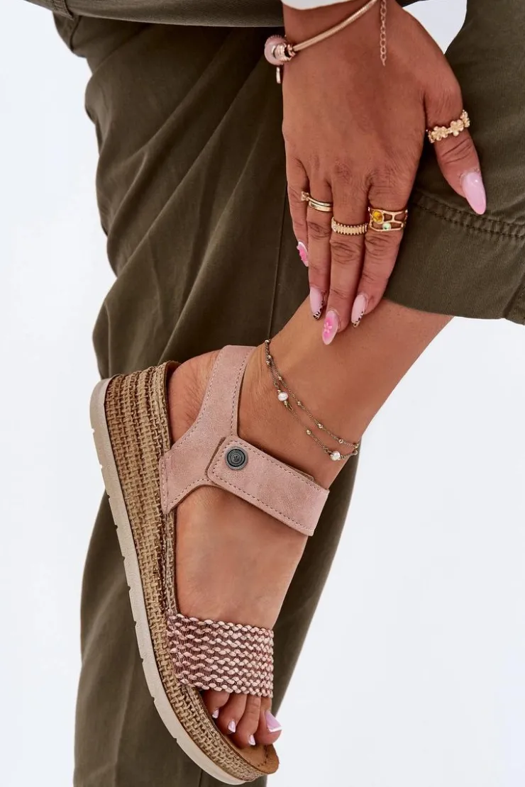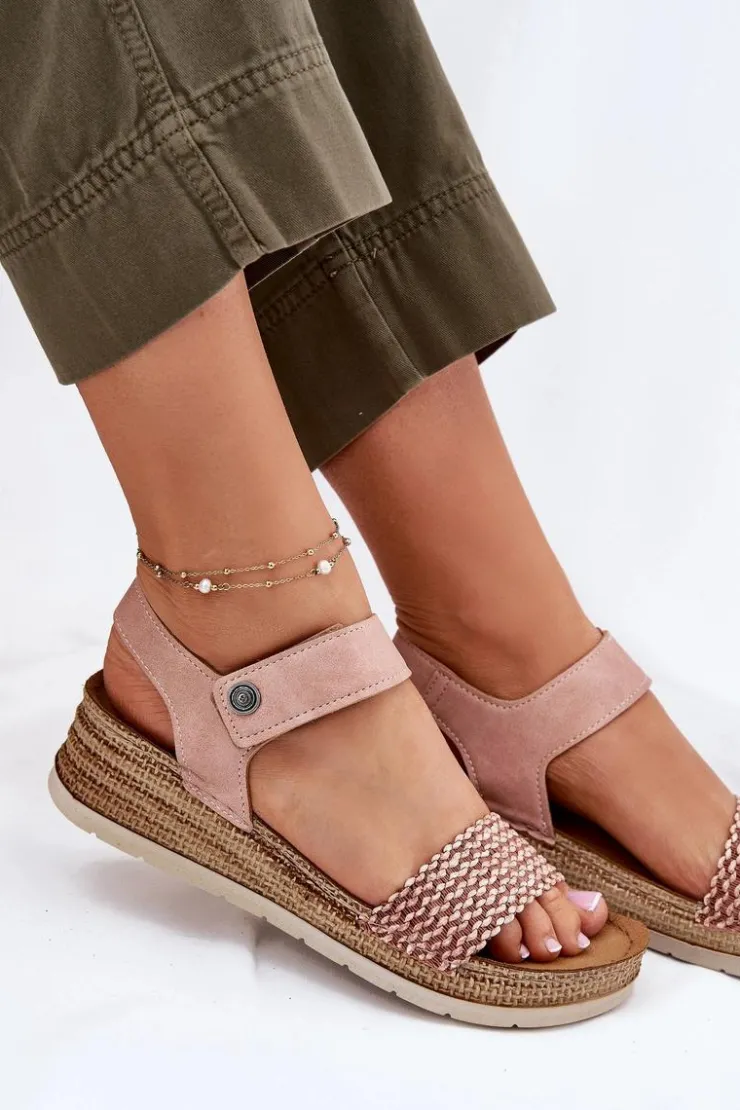 Sandały damskie od marki INBLU. Osadzone na delikatnym koturnie. Zapinane na rzep, co zapewnia doskonałe dopasowanie do stopy. Wkładka wewnętrzna „COMFORT ANATOMICO” profilowana, dostosowana do kształtu anatomicznego stopy, wykonana z naturalnej skóry. Spód dwuwarstwowy wykonany z lekkiego i elastycznego tworzywa – poliuretanu – zapewnia sprężystość i bardzo dobre przenoszenie obciążeń na podłoże. Przy wyborze rozmiaru prosimy kierować się tabelą rozmiarów.