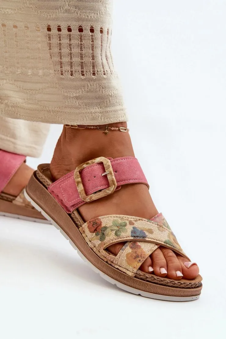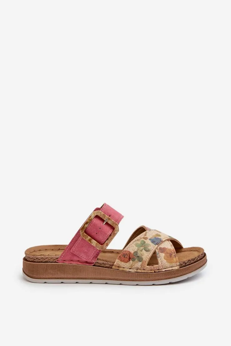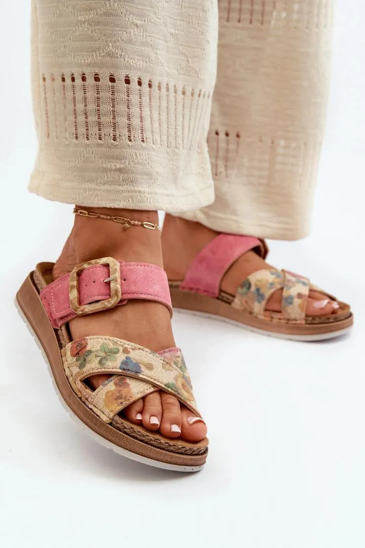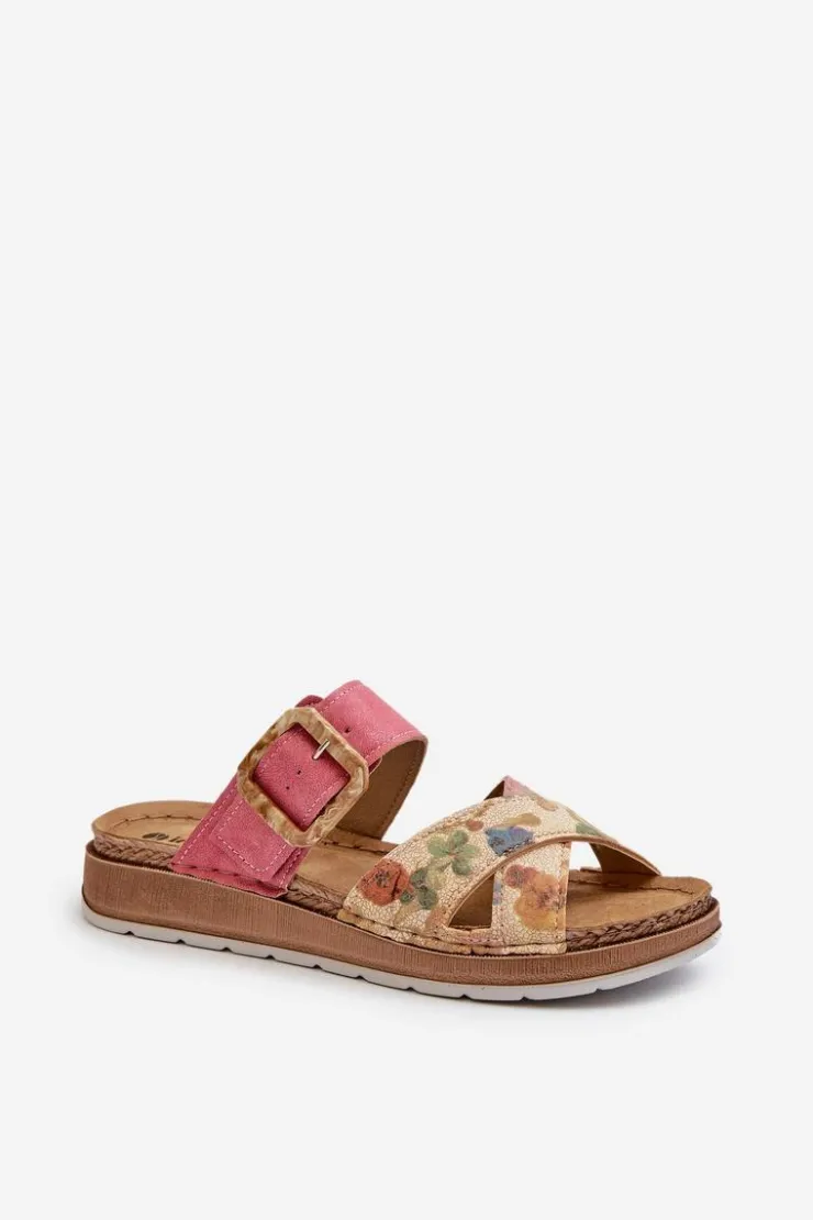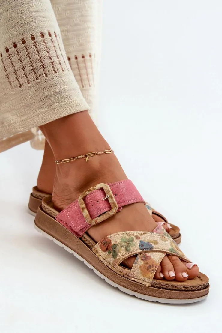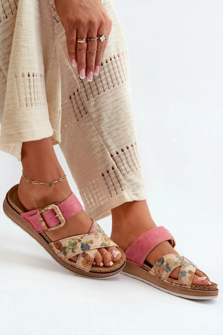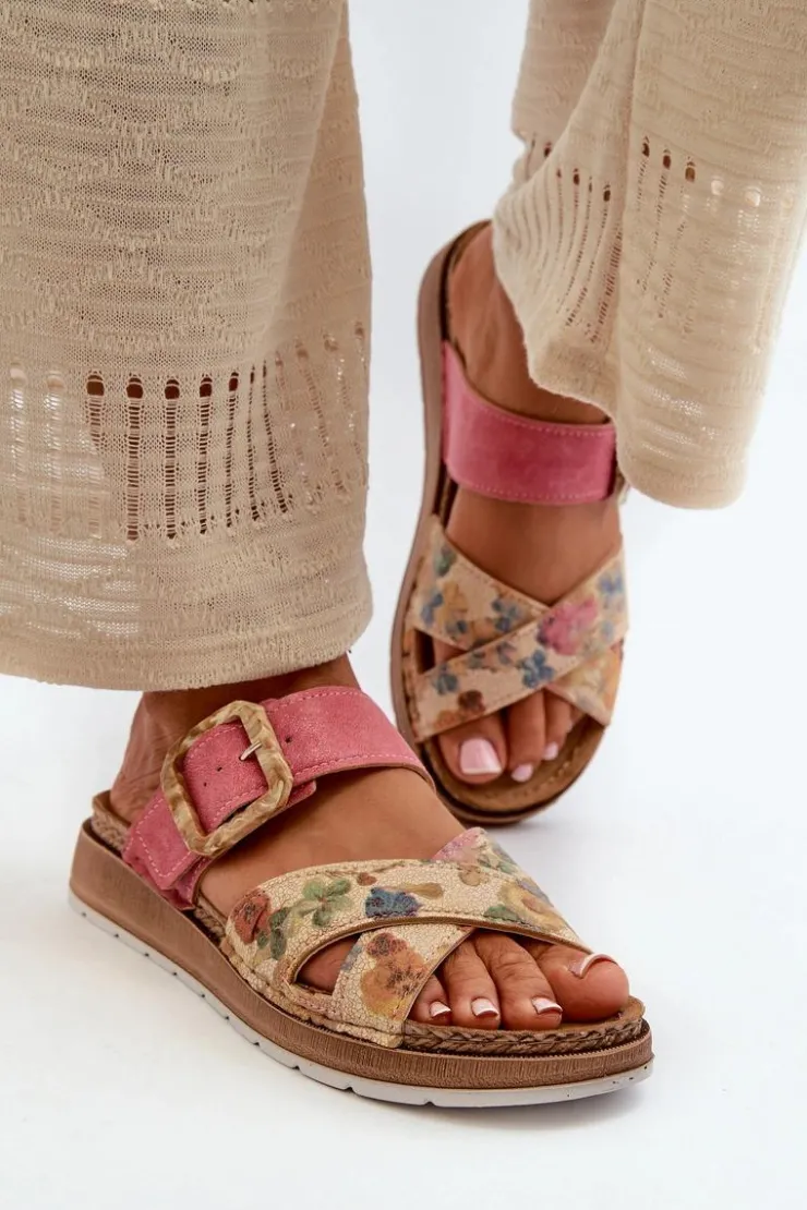 Lekkie klapki damskie od marki Inblu. Model ten posiada dwa wzorzyste paski oraz jeden regulowany z klamrą. Profilowana wkładka dopasowana do anatomicznego kształtu stopy. Lekki, dwuwarstwowy spód z elastycznego tworzywa zapewnia sprężystość i doskonałe przenoszenie obciążeń, co gwarantuje wygodę noszenia. Przy wyborze rozmiaru prosimy sugerować się tabelą rozmiarów.