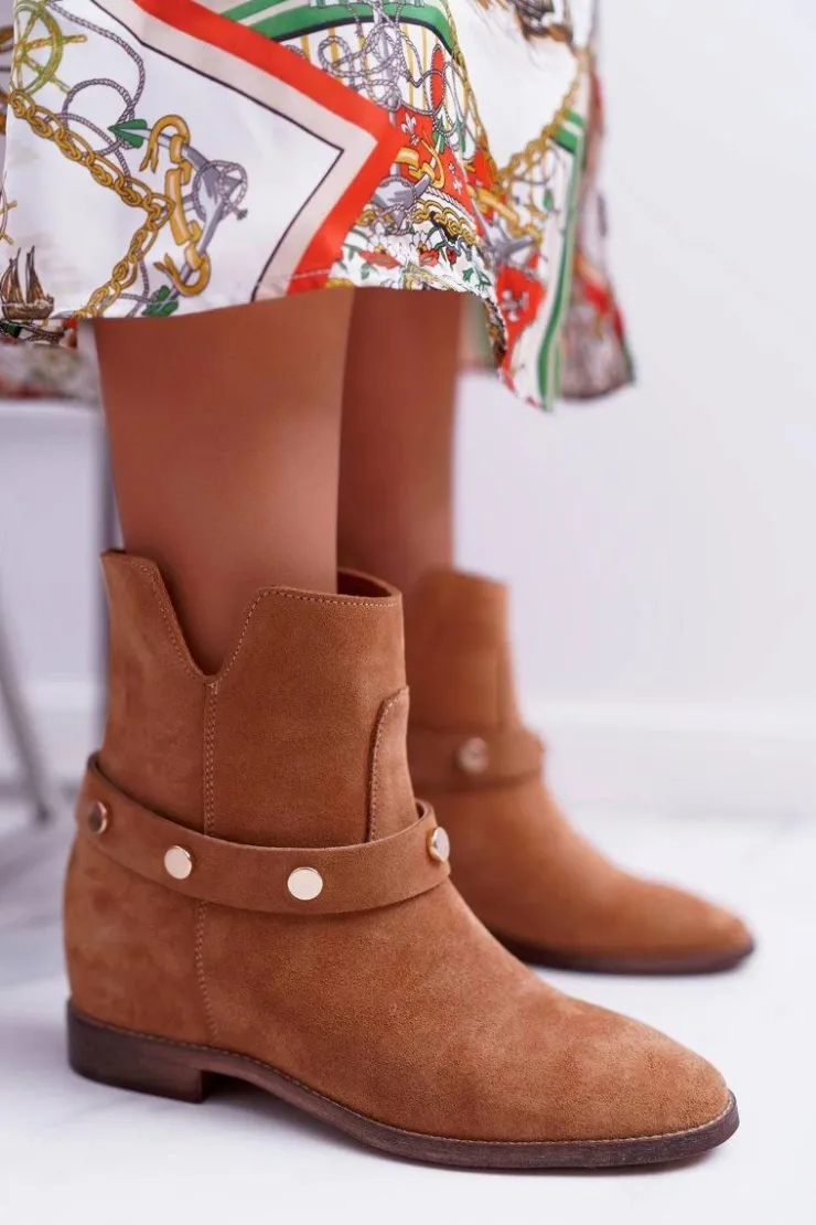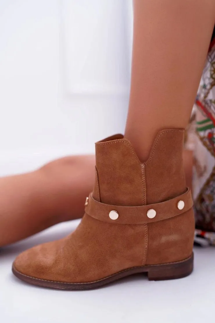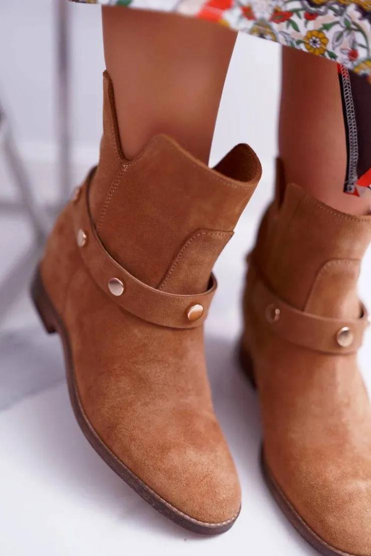Damskie Laura Messi Botki Damskie 1890 Skóra Zamsz Camel Darmah