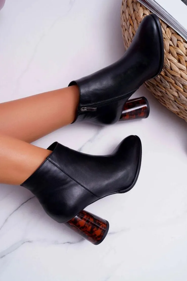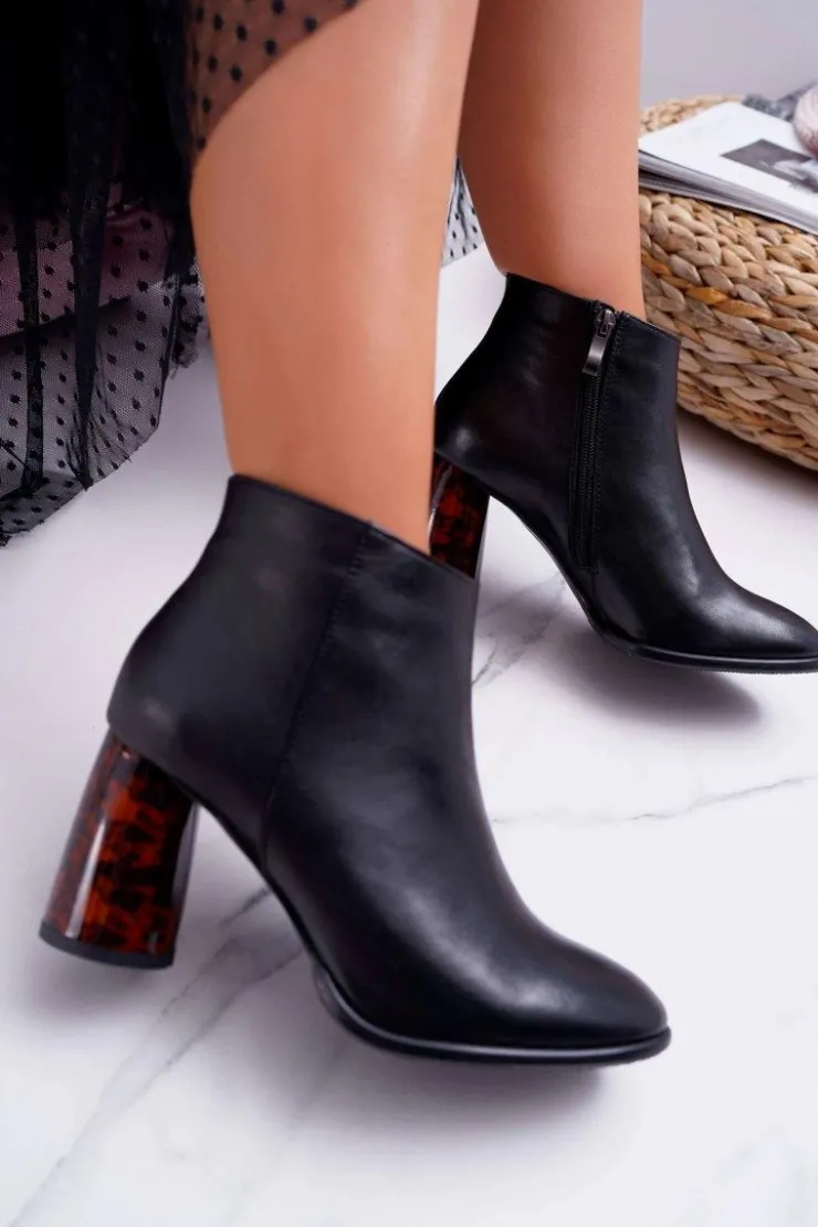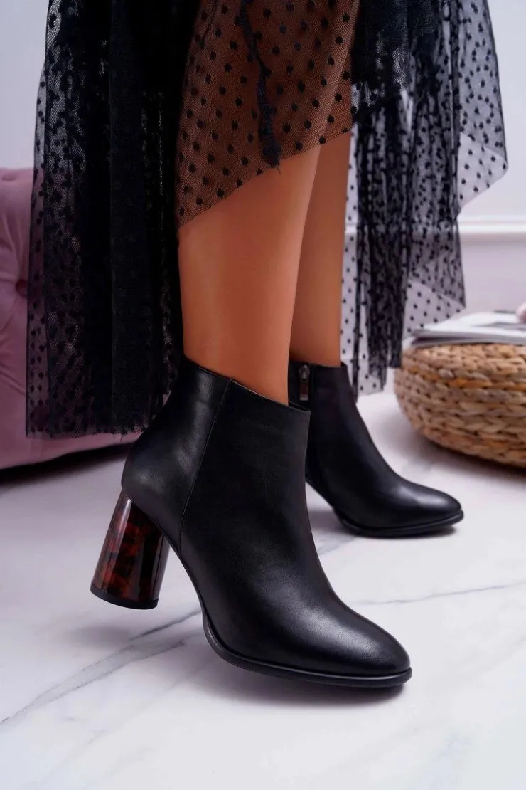 Damskie Laura Messi Botki Damskie Na Słupku Skórzane Czarne 2056