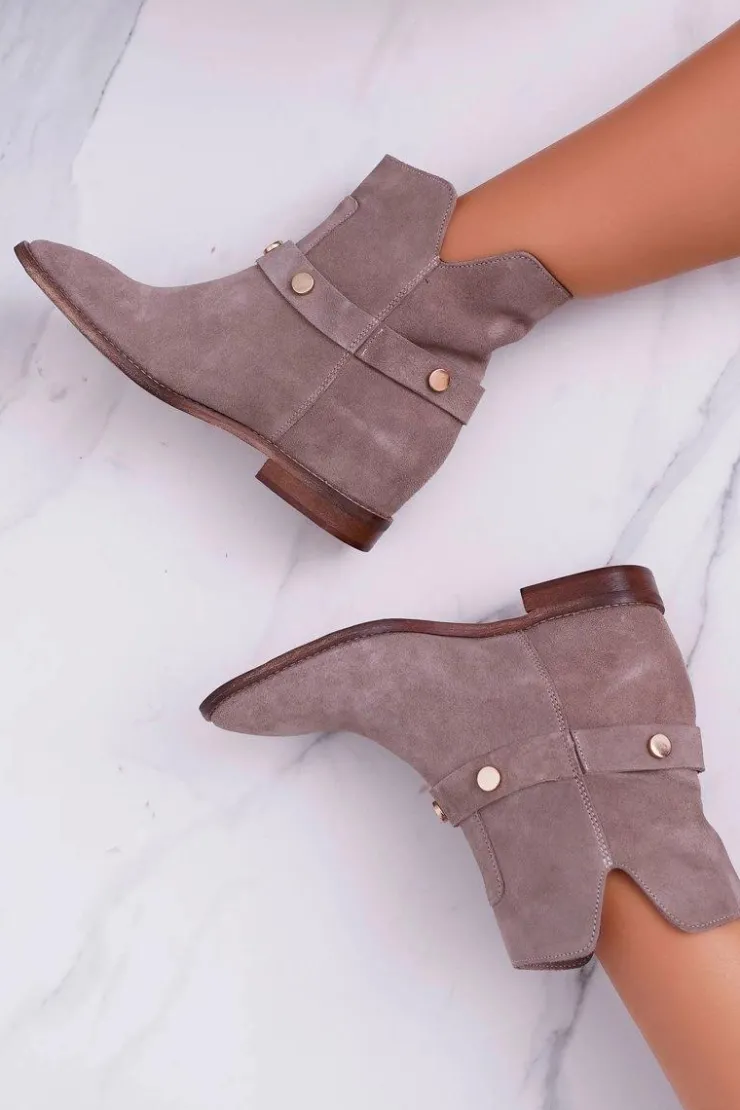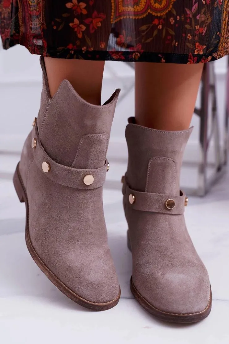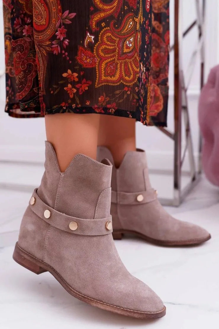 Damskie Laura Messi Botki Damskie Płaskie 1890 Skóra Zamsz Beżowe Darmah