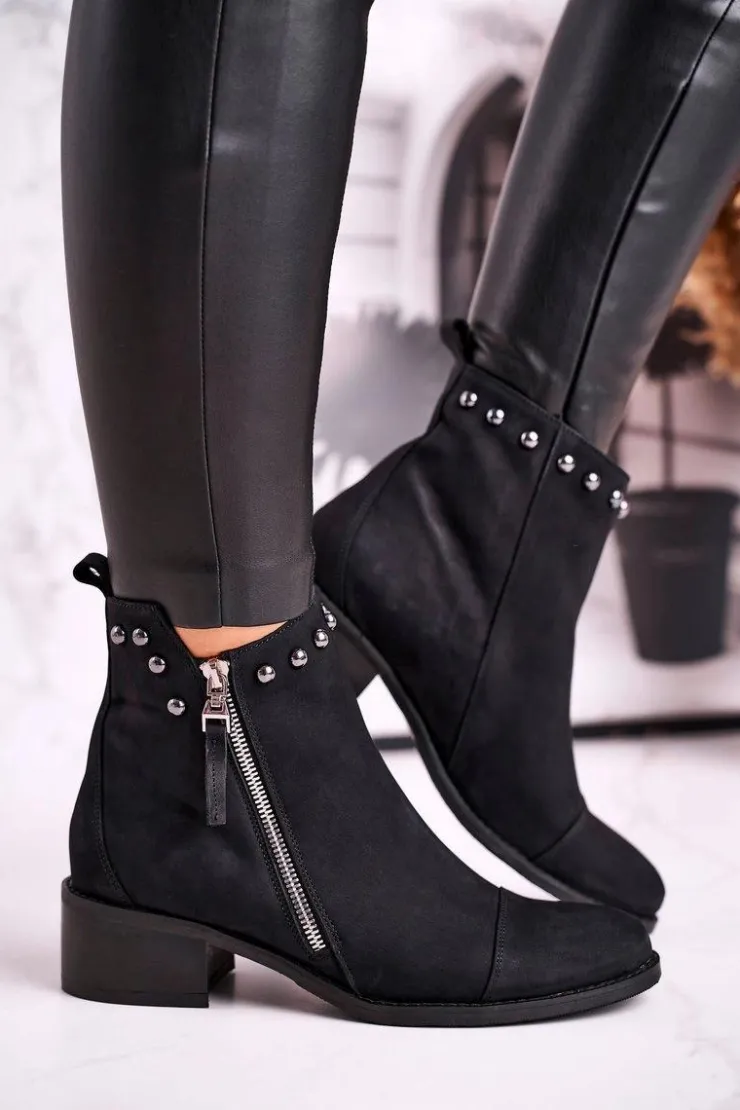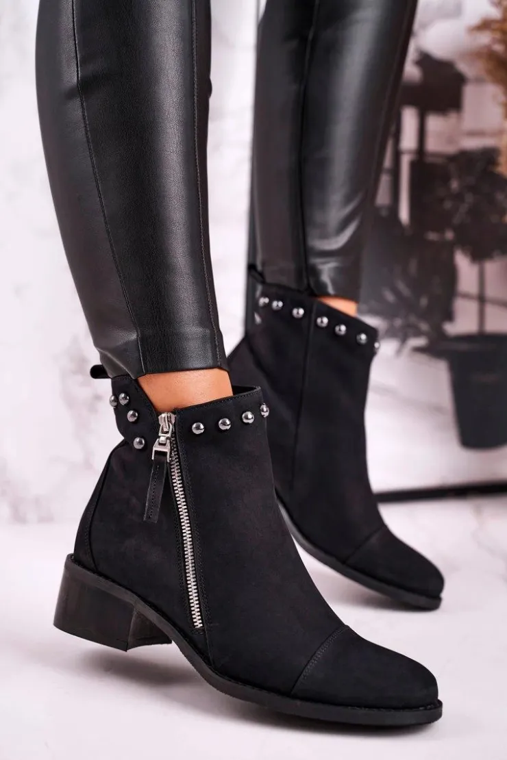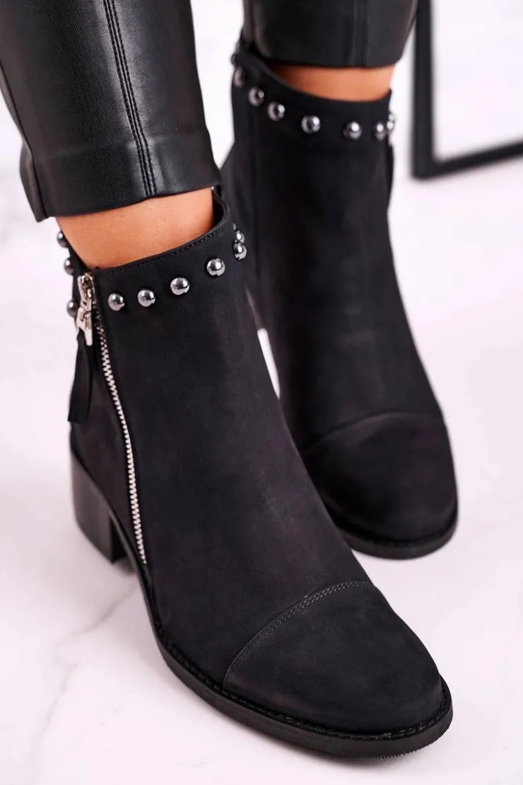 Damskie Laura Messi Botki Damskie Zamszowe Ocieplane Czarne 1879