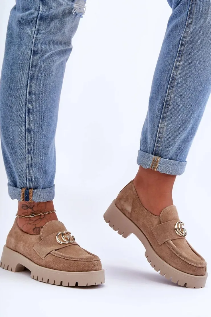 Eleganckie półbuty damskie zostały wykonane ze skóry naturalnej. Osadzone na masywnej platformie i płaskim, stabilnym obcasie. Wkładka ze skóry naturalnej, a podeszwa wykonana z gumowego tworzywa. Model klasyczny, wsuwany. Dodatkowo pod językiem znajduje się gumka ściągająca, która sprawi, że but będzie idealnie dopasowany do stopy. Buty te sprawdzą się w wielu stylizacjach! Koniecznie sprawdź całą naszą kolekcję półbutów! Przy wyborze rozmiaru prosimy sugerować się tabelą rozmiarów.