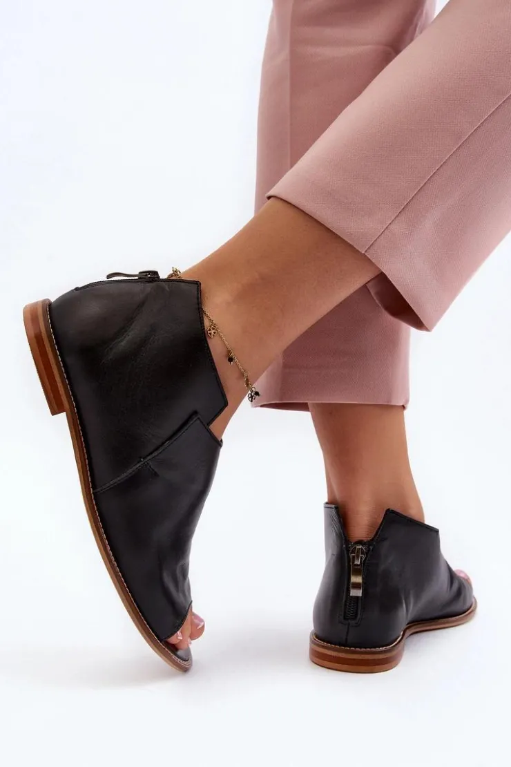 Eleganckie sandały marki Laura Messi. Buty wykonane są ze skóry naturalnej z dbałością o każdy detal. Osadzone na płaskim obcasie. Model z zakrytą piętą. Z tyłu suwak. Skózana wkładka zapewni wygodę podczas użytkowania. Ten niezwykle stylowy fason koniecznie musi znaleźć się w Twojej letniej garderobie! Przy wyborze rozmiaru prosimy sugerować się tabelą rozmiarów.