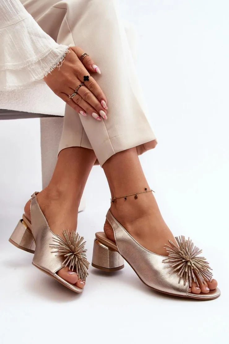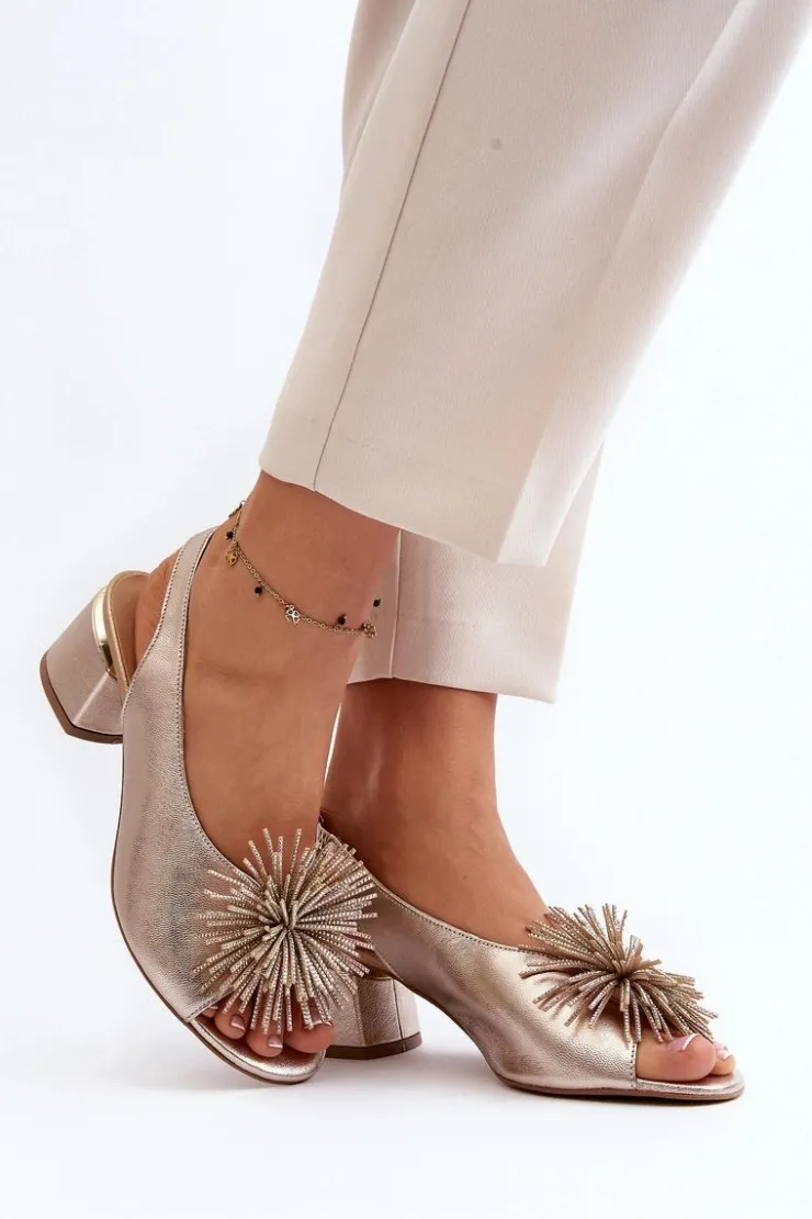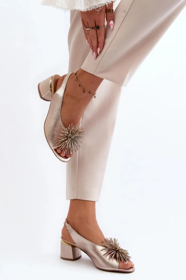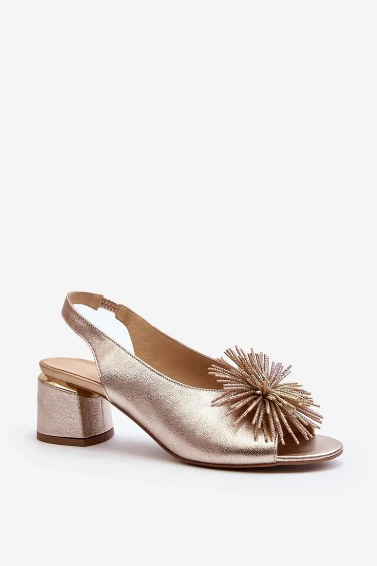 Eleganckie sandały zostały wykonane z naturalnej skóry. Osadzone na obcasie w postaci klocka. Posiadają ozdobę z przodu. Skórzana wkładka zapewni komfort podczas użytkowania. Model ten będzie pasować do eleganckich spodni, spódnic i sukienek. Koniecznie powinnaś je mieć! Przy wyborze rozmiaru prosimy sugerować się tabelą rozmiarów.