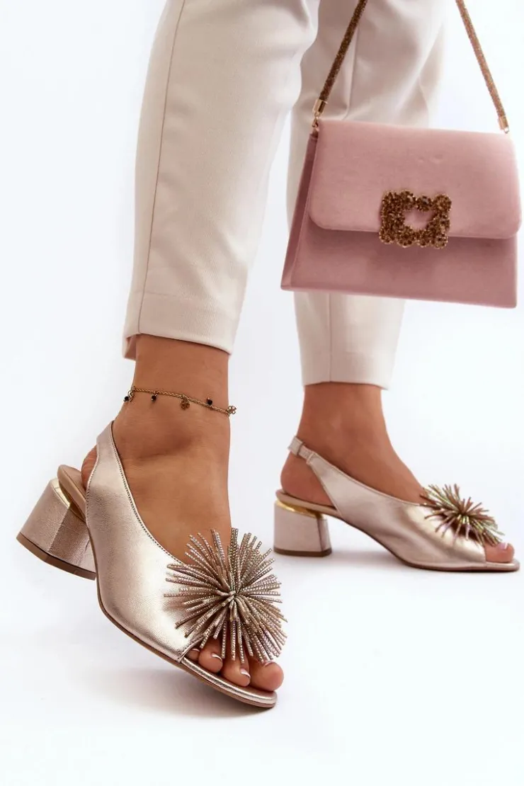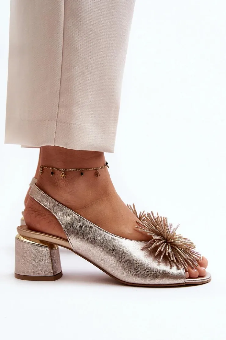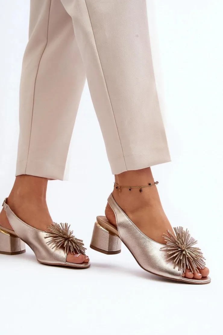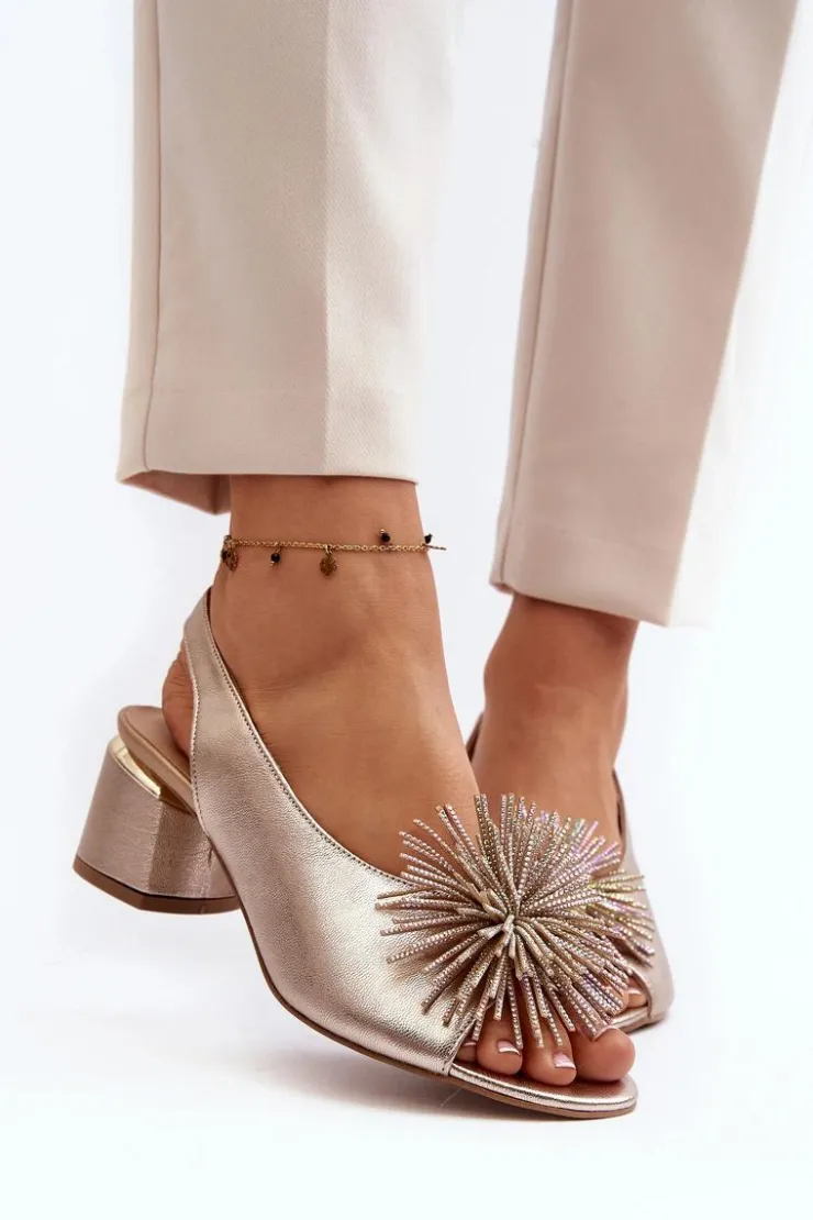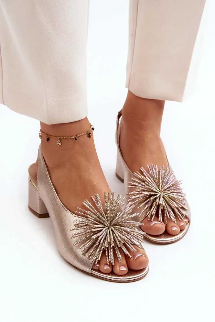 Eleganckie sandały zostały wykonane z naturalnej skóry. Osadzone na obcasie w postaci klocka. Posiadają ozdobę z przodu. Skórzana wkładka zapewni komfort podczas użytkowania. Model ten będzie pasować do eleganckich spodni, spódnic i sukienek. Koniecznie powinnaś je mieć! Przy wyborze rozmiaru prosimy sugerować się tabelą rozmiarów.