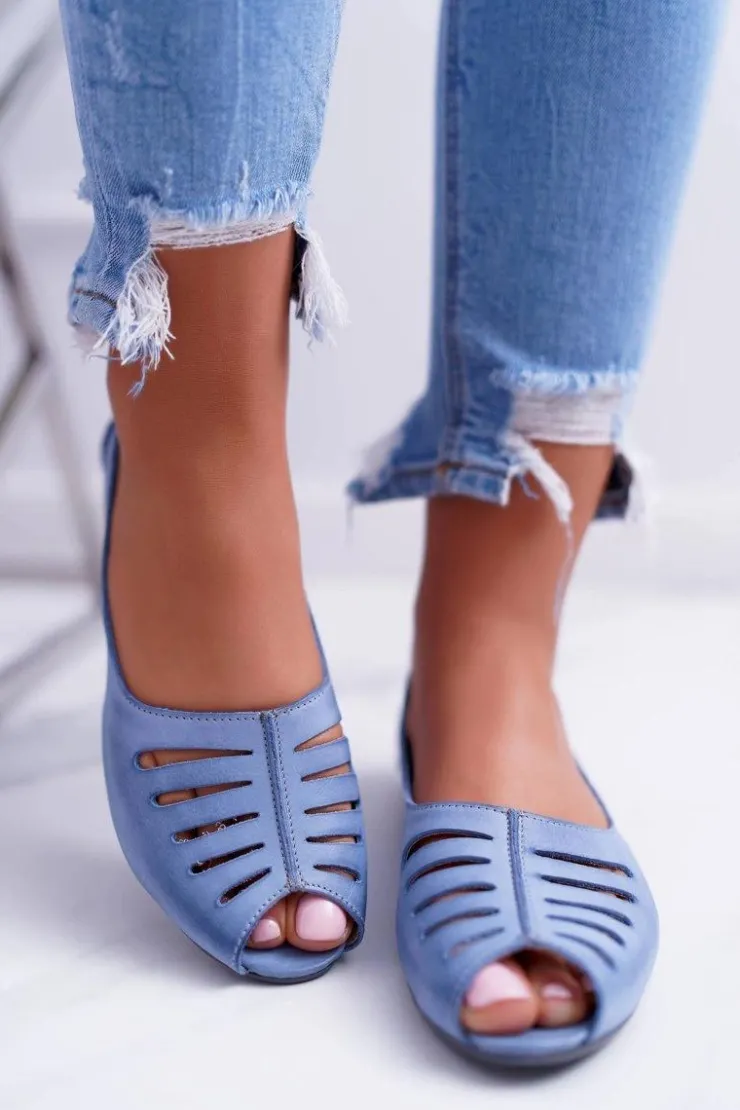Damskie Maciejka Baleriny Damskie Skórzane Jasno Niebieskie 03497-33