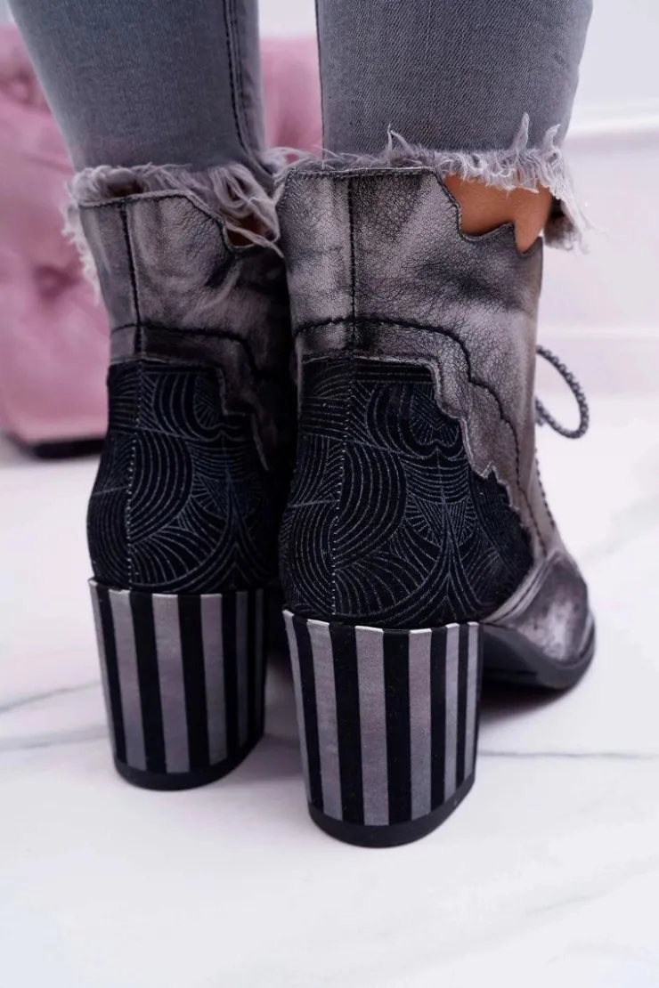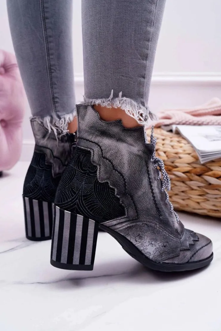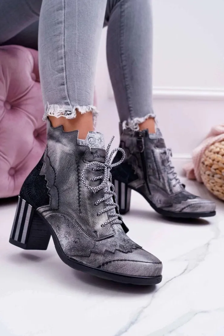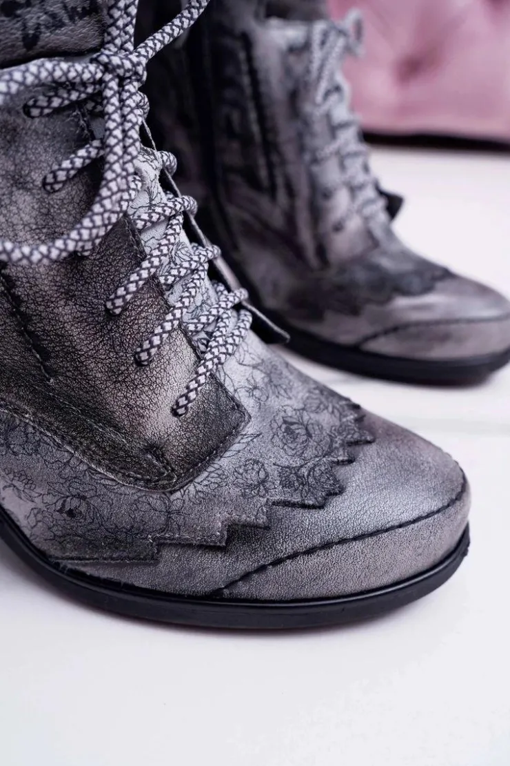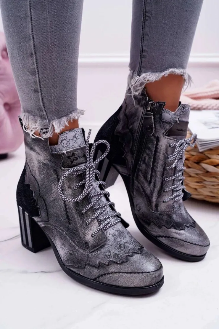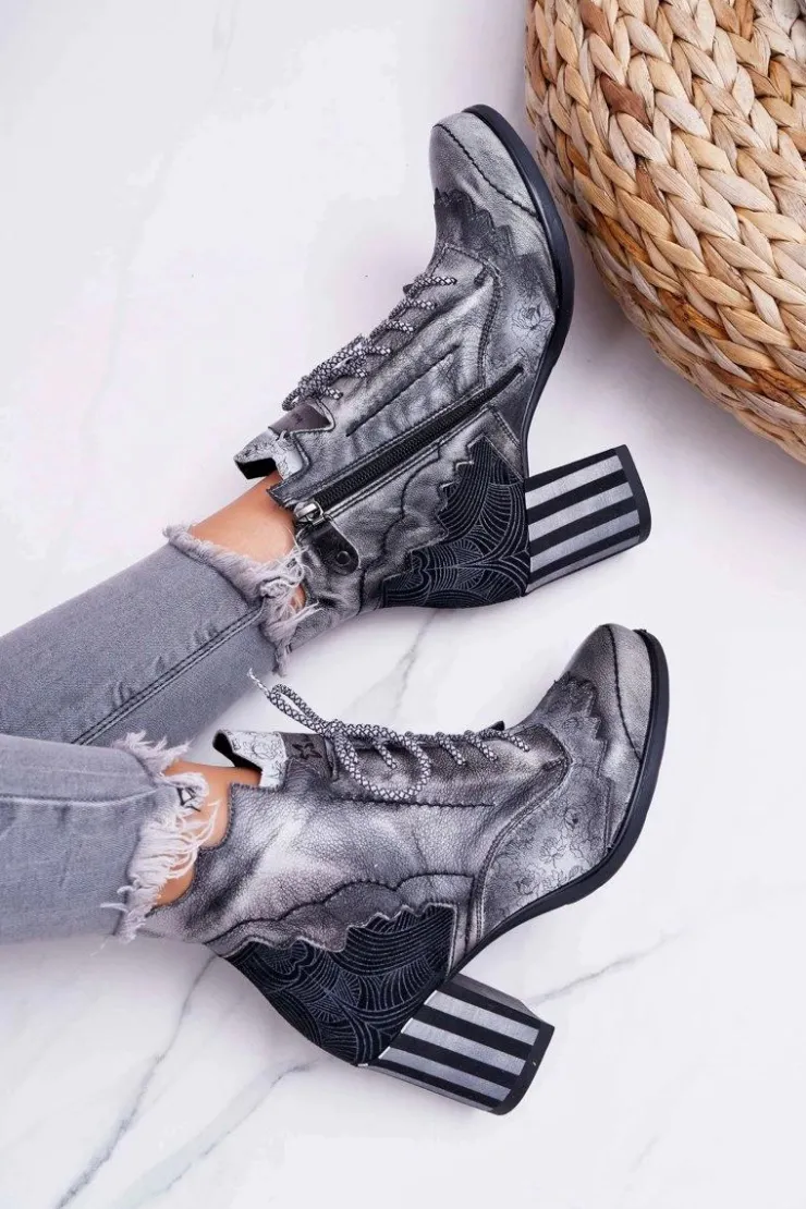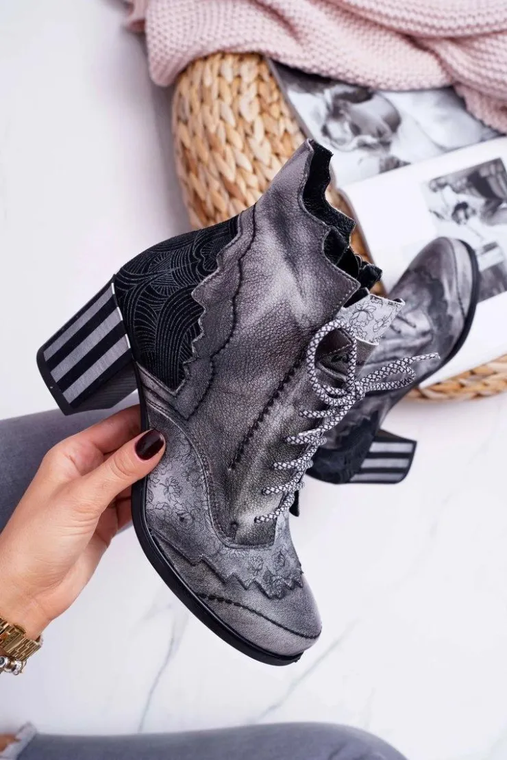 Damskie Maciejka Botki Damskie Skórzane Szare 03190