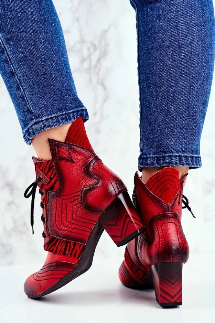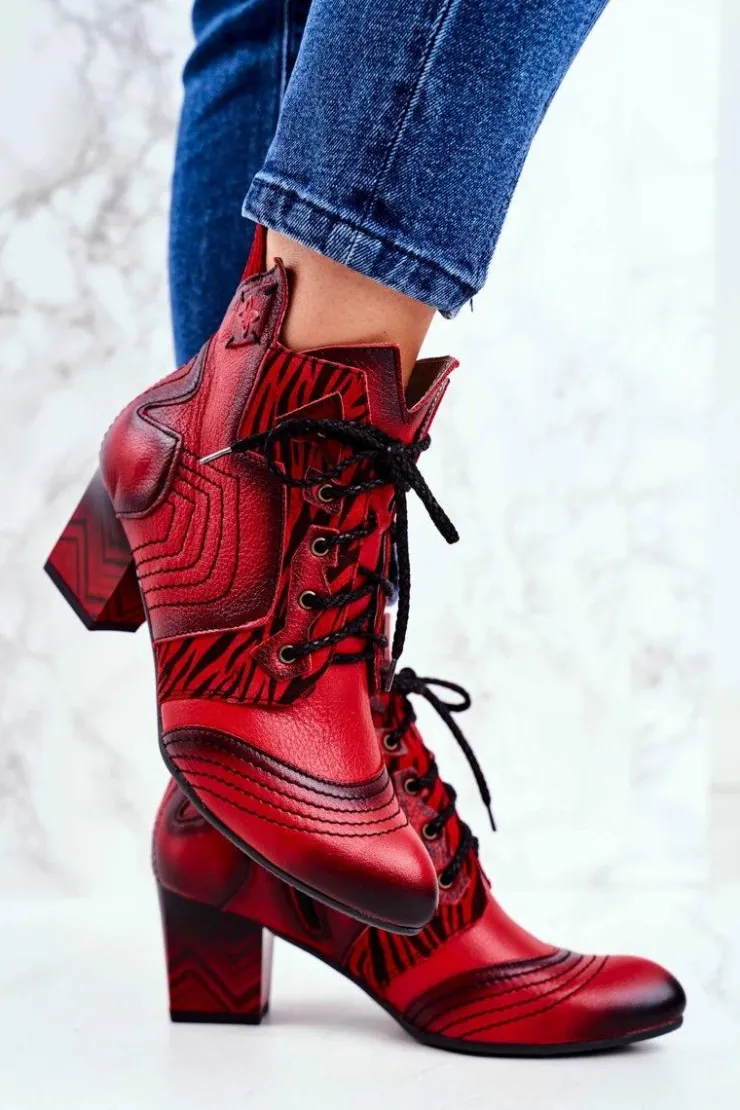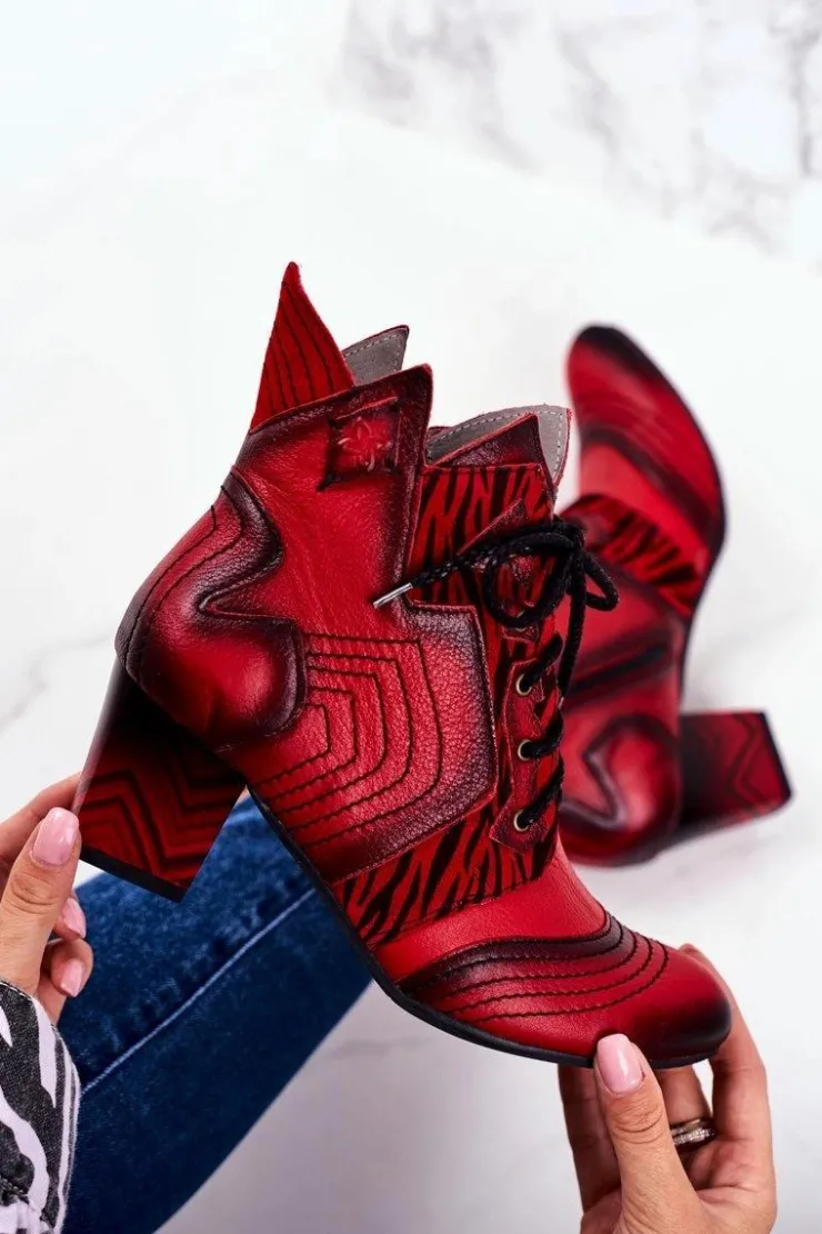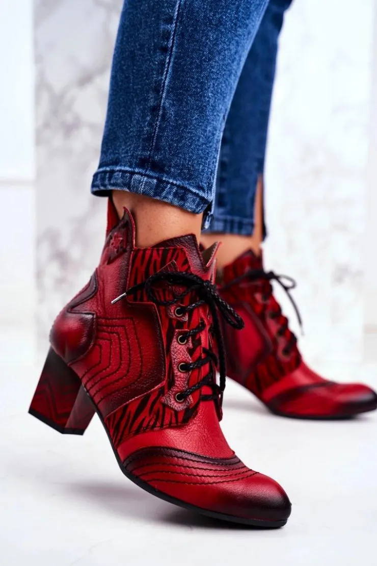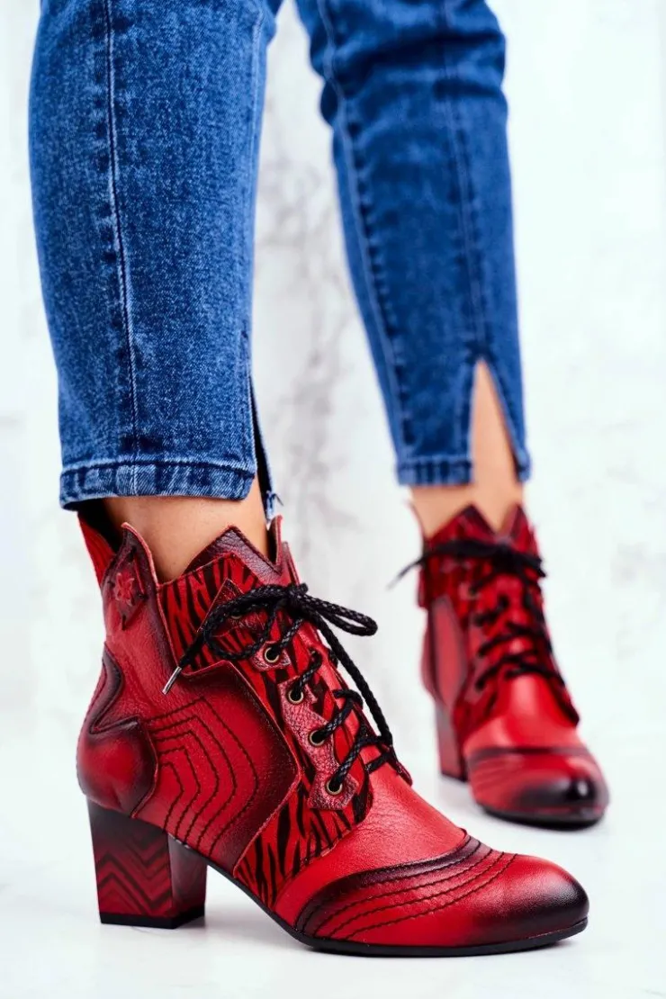 Damskie Maciejka Botki Damskie Skórzane Trzewiki Czerwone 03194