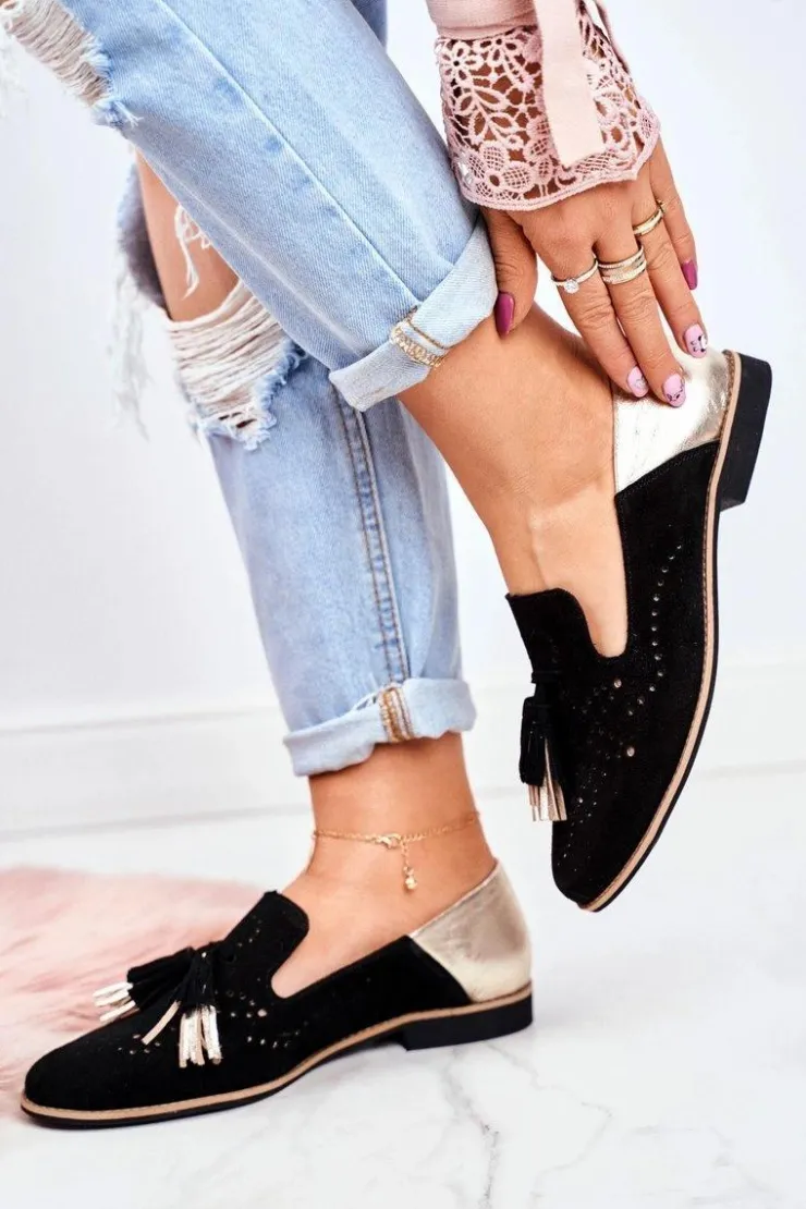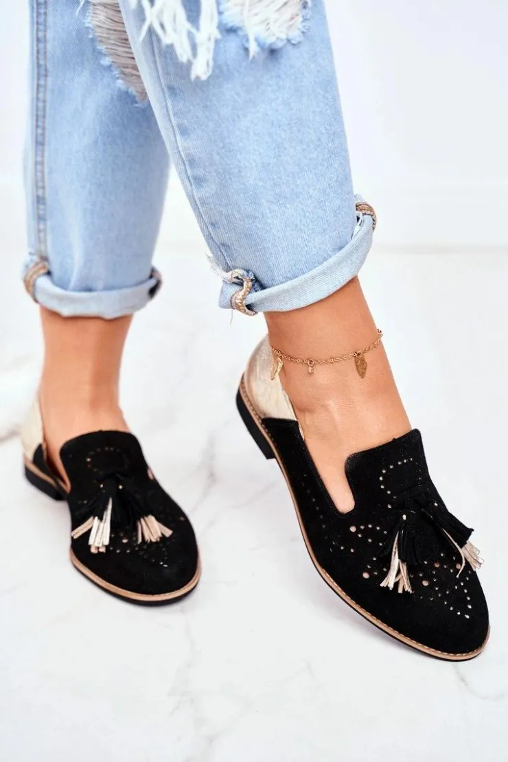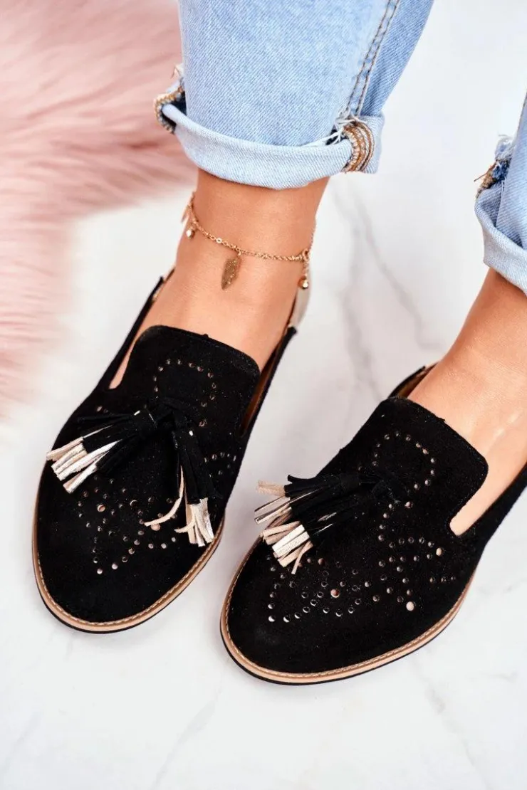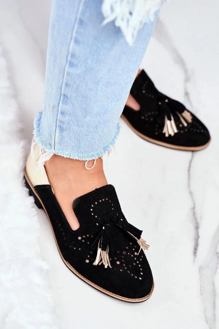 Damskie Maciejka Damskie Półbuty Skórzane Mokasyny Czarne 04484-01/00-5