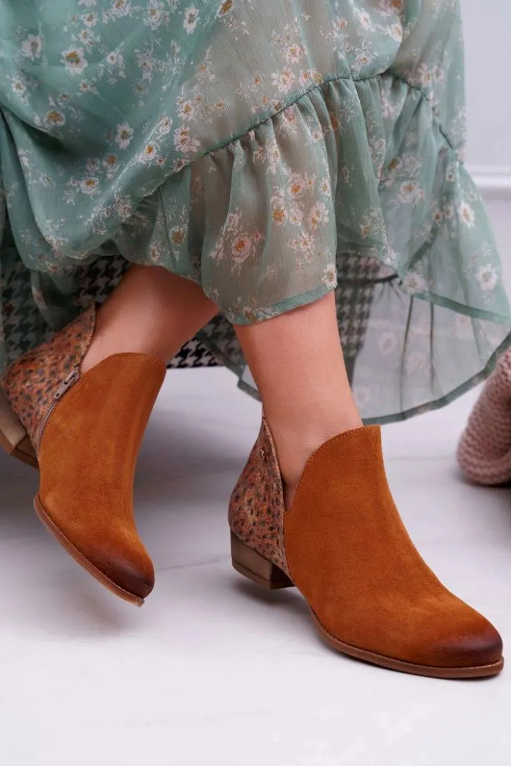 Wyjątkowe botki od polskiej marki MACIEJKA. Buty cechuje wysoka jakość wykonania oraz dbałość o detale. Botki wykonano ręcznie ze skóry naturalnej. Skórzana wkładka oraz wygodny obcas zapewnią maksymalny komfort! Dzięki pięknie zdobionej cholewce buty wzbogacą wszystkie Twoje stylizacje! Przy wyborze rozmiaru prosimy sugerować się tabelą rozmiarów.