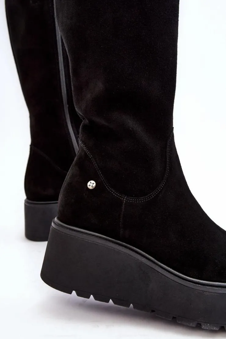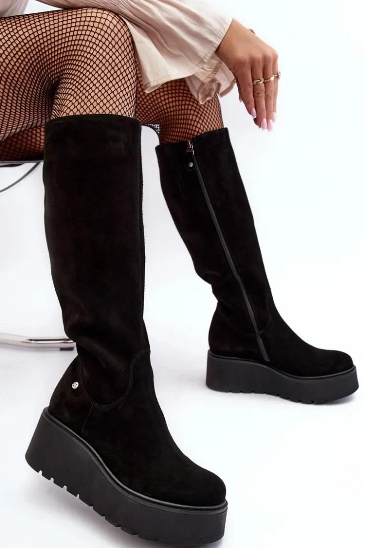 Wyjątkowe kozaki od renomowanej firmy Maciejka. Buty wykonane są w całości z naturalnej skóry. Miękka wkładka zapewni komfort. Osadzono je na masywnej platformie i koturnie. Dodatkowo zapiętek jest usztywniany. Kozaki dopełnią każdą Twoją stylizację. Koniecznie sprawdź całą naszą ofertę butów Maciejka. Przy wyborze rozmiaru prosimy sugerować się tabelą rozmiarów.
