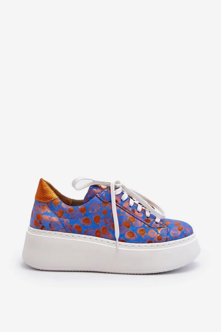 Buty sportowe marki Maciejka. Wykonane z naturalnej skóry z dbałością o szczegóły. Osadzone na masywnej platformie. Model klasycznie sznurowany z usztywnionym zapiętkiem. Noski zaokrąglone. Miękka, wkładka zapewni komfort podczas użytkowania. Na sznurówkach przypięta jest mała, biżuteryjna ozdoba. Przy wyborze rozmiaru prosimy sugerować się tabelą rozmiarów.