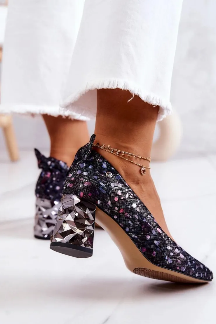 Cudowne, eleganckie, niesamowite! – te cechy idealnie opisują czółenka firmy Maciejka. Zostały wykonane z naturalnej skóry. Efektowny wzór sprawia, że prezentują się niezwykle wyjątkowo! Nosek w szpic. Z tyłu cholewki posiadają uroczą kokardkę. Lustrzany obcas w postaci szerokiego słupka uniesie sylwetkę i wysmukli nogi. Nie czekaj dłużej aż znikną!Przy wyborze rozmiaru prosimy sugerować się tabelą rozmiarów.