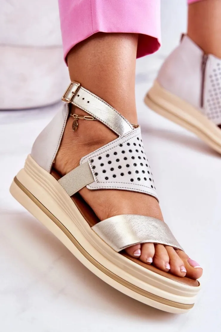 Piękne sandały na koturnie od polskiej marki Maciejka. Buty zostały wykonane z wysokiej jakości naturalnej skóry z dodatkowym, ażurowym wzorem. Miękka, skórzana wkładka to gwarancja wygody! Zapiętek usztywniany. Zakryta pięta, odkryte palce. Sandały posiadają gumkę pozwalającą na odpowiednie dopasowanie obuwia oraz regulowany pasek zapinany na sprzączkę. Posiadają także suwak ułatwiający zakładanie obuwia. Osadzone na platformie z koturnem. Koniecznie sprawdź całą naszą kolekcję butów marki Maciejka. Przy wyborze rozmiaru prosimy sugerować się tabelą rozmiarów.