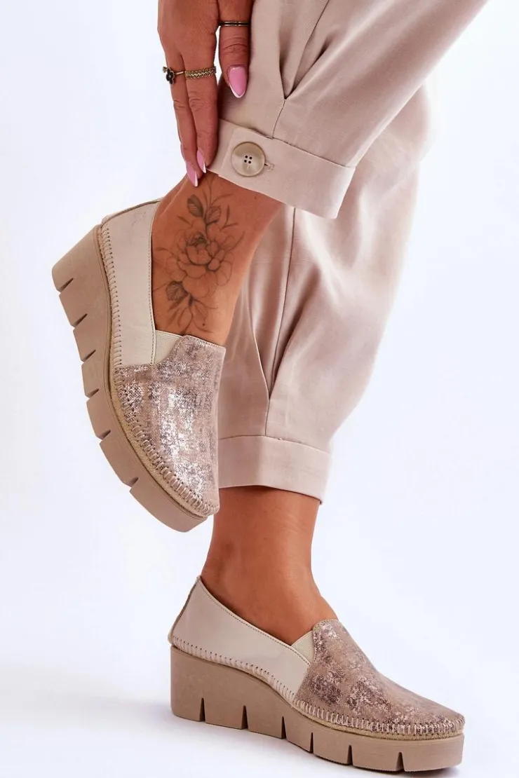 Tenisówki slip-on marki Maciejka z cholewką przed kostkę zostały wykonane ze skóry naturalnej. Osadzone na delikatnej platformie i koturnie. Wygodne i komfortowe w użytkowaniu obuwie. Trampki posiadają gumki przytrzymujące stopę przed przesuwaniem. Koniecznie sprawdź także pozostałe modele tenisówek! Przy wyborze rozmiaru prosimy sugerować się tabelą rozmiarów.