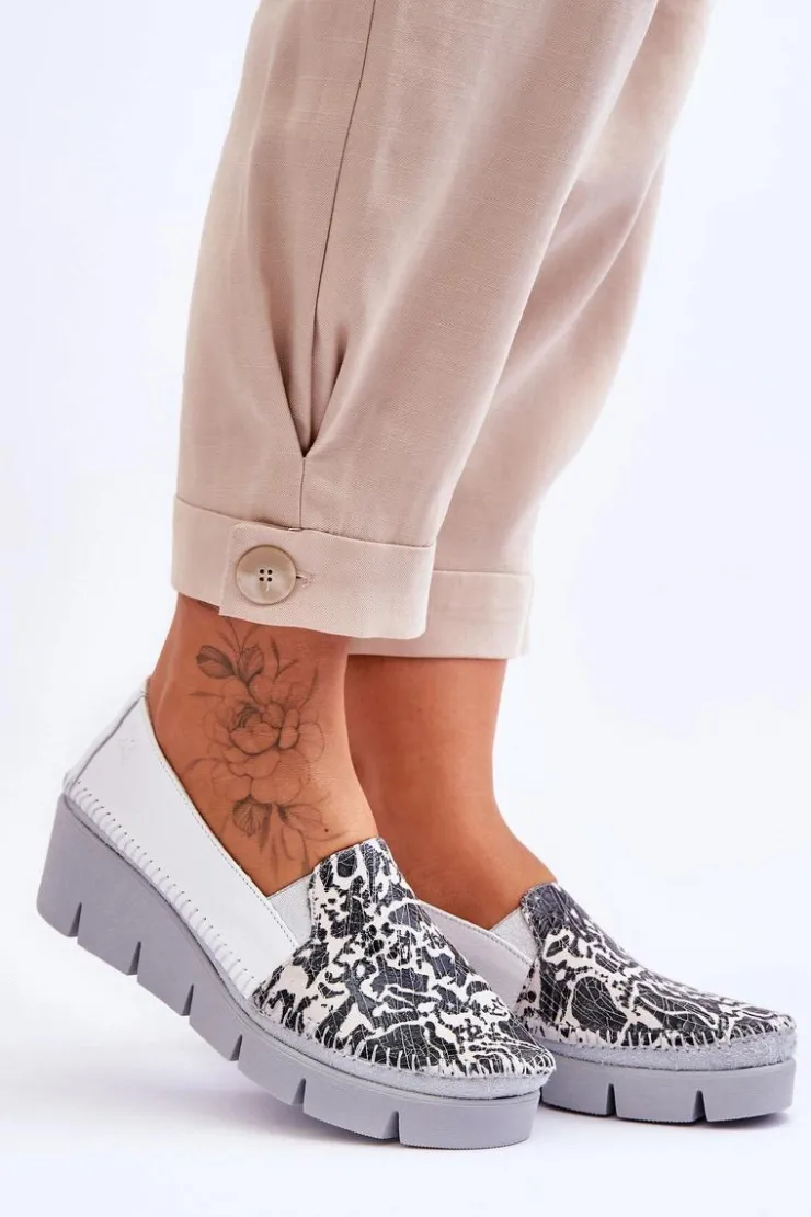 Tenisówki slip-on marki Maciejka z cholewką przed kostkę zostały wykonane ze skóry naturalnej. Osadzone na delikatnej platformie i koturnie. Wygodne i komfortowe w użytkowaniu obuwie. Trampki posiadają gumki przytrzymujące stopę przed przesuwaniem. Koniecznie sprawdź także pozostałe modele tenisówek! Przy wyborze rozmiaru prosimy sugerować się tabelą rozmiarów.