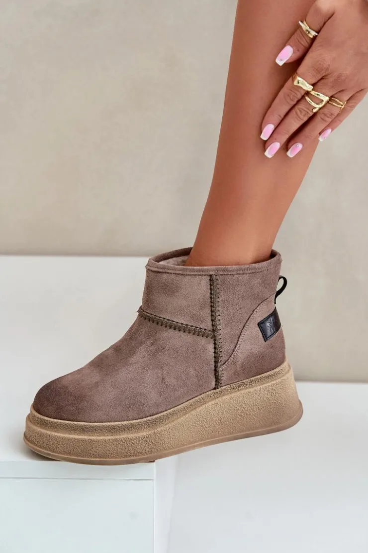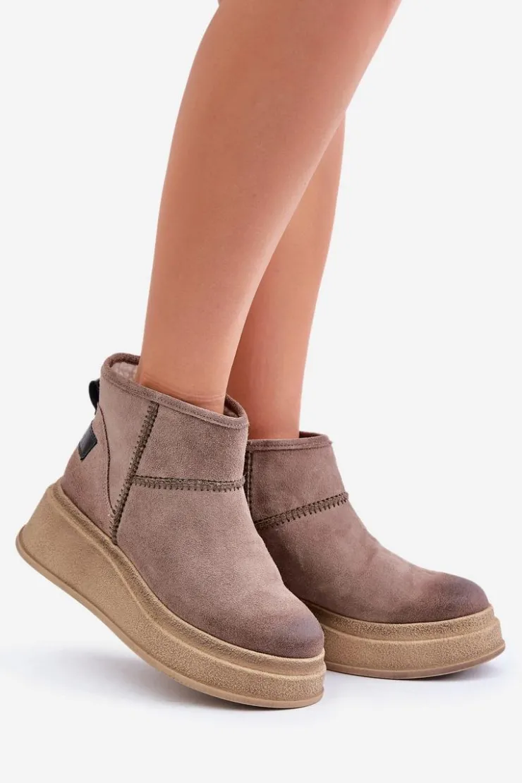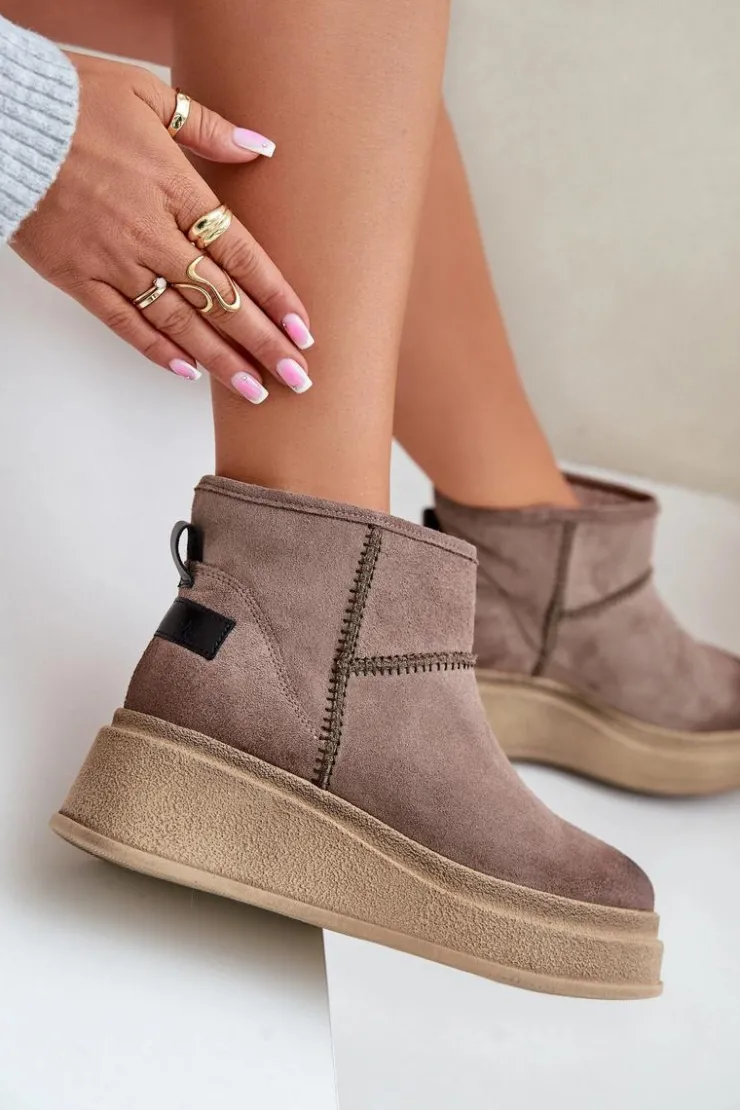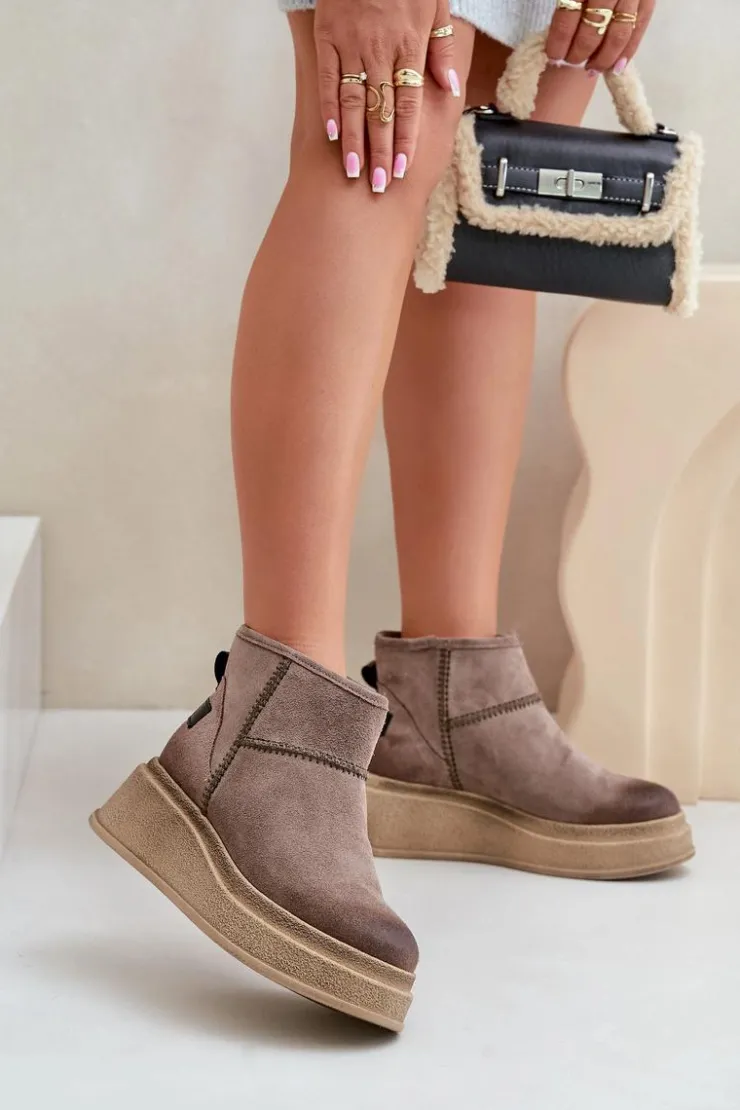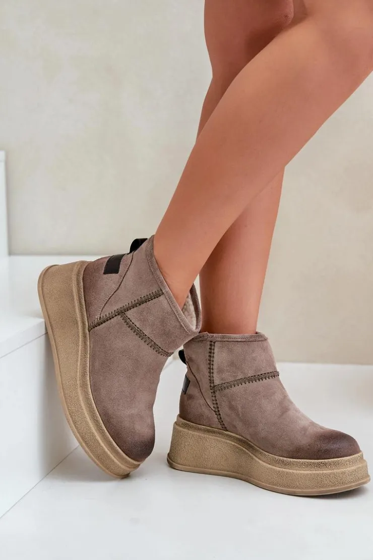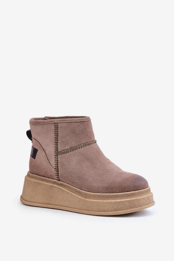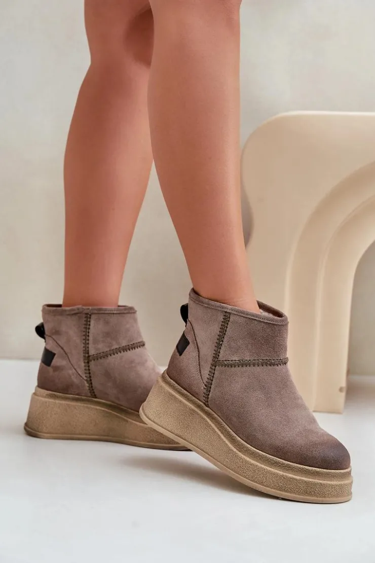 Damskie Maciejka Skórzane Zamszowe Śniegowce Botki Na Platformie I Koturnie 06769-02 Ciemnobrązowe