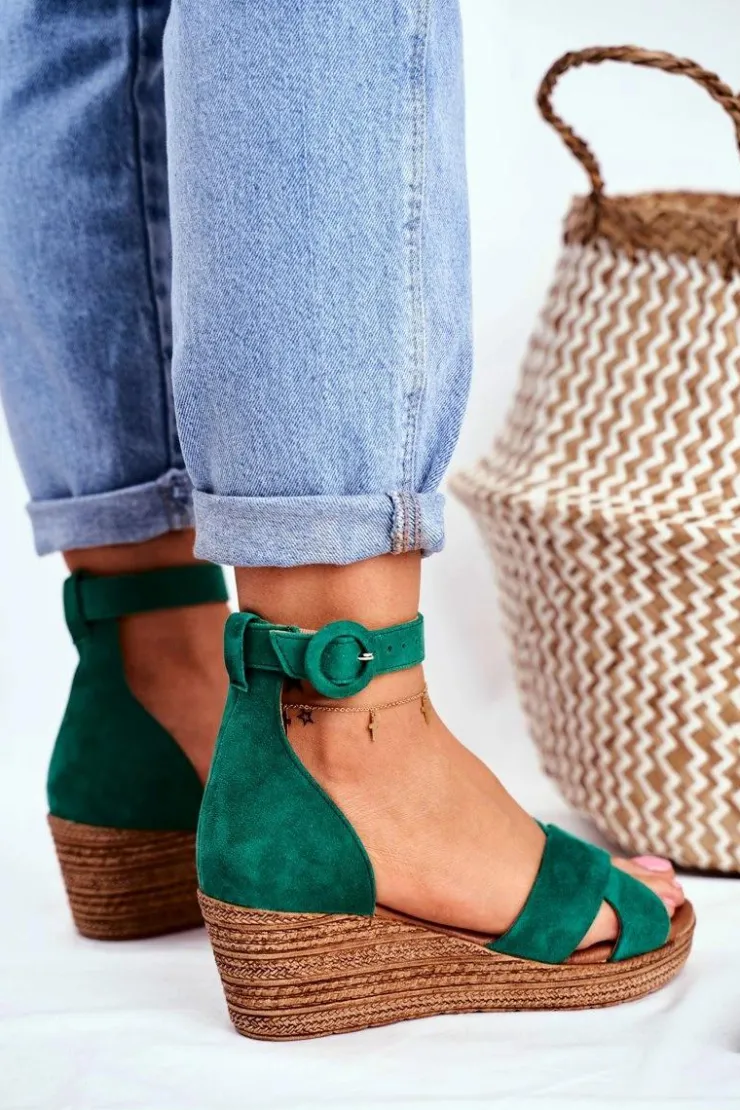 Piękne sandały na koturnie od polskiej marki Maciejka. Buty zostały wykonane ręcznie z wysokiej jakości naturalnego zamszu. Miękka, skórzana, oddychająca wkładka to gwarancja wygody! Koniecznie sprawdź całą naszą kolekcję butów marki Maciejka. Przy wyborze rozmiaru prosimy sugerować się tabelą rozmiarów.