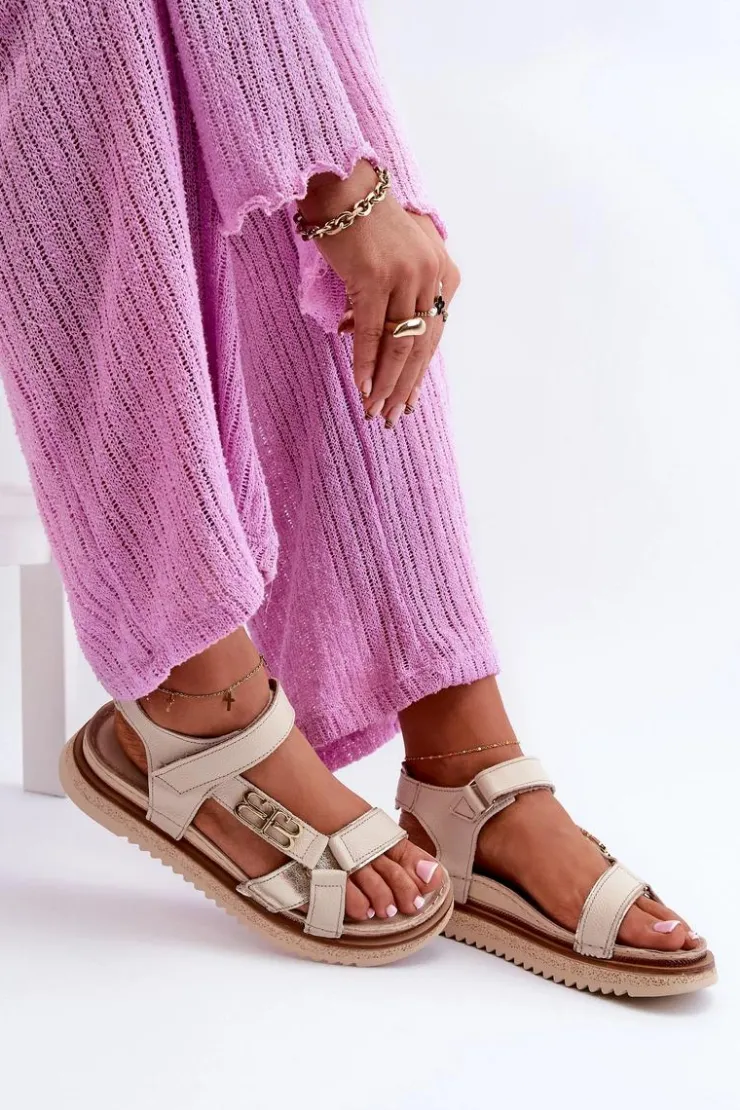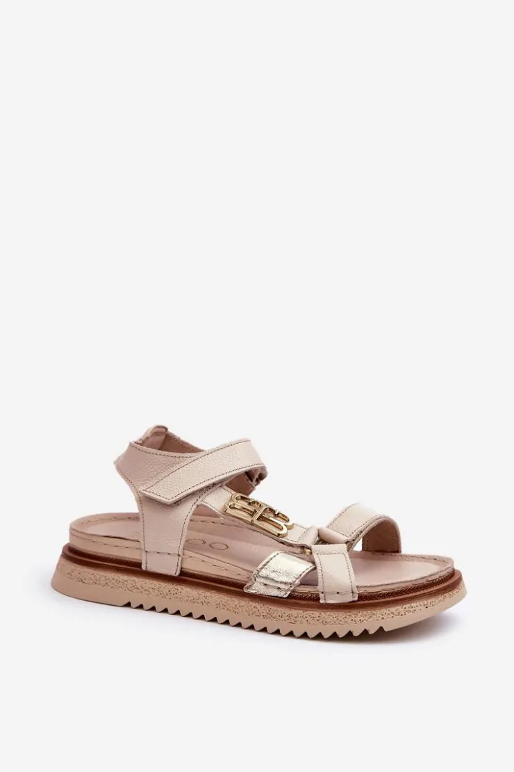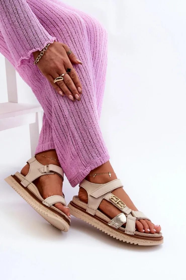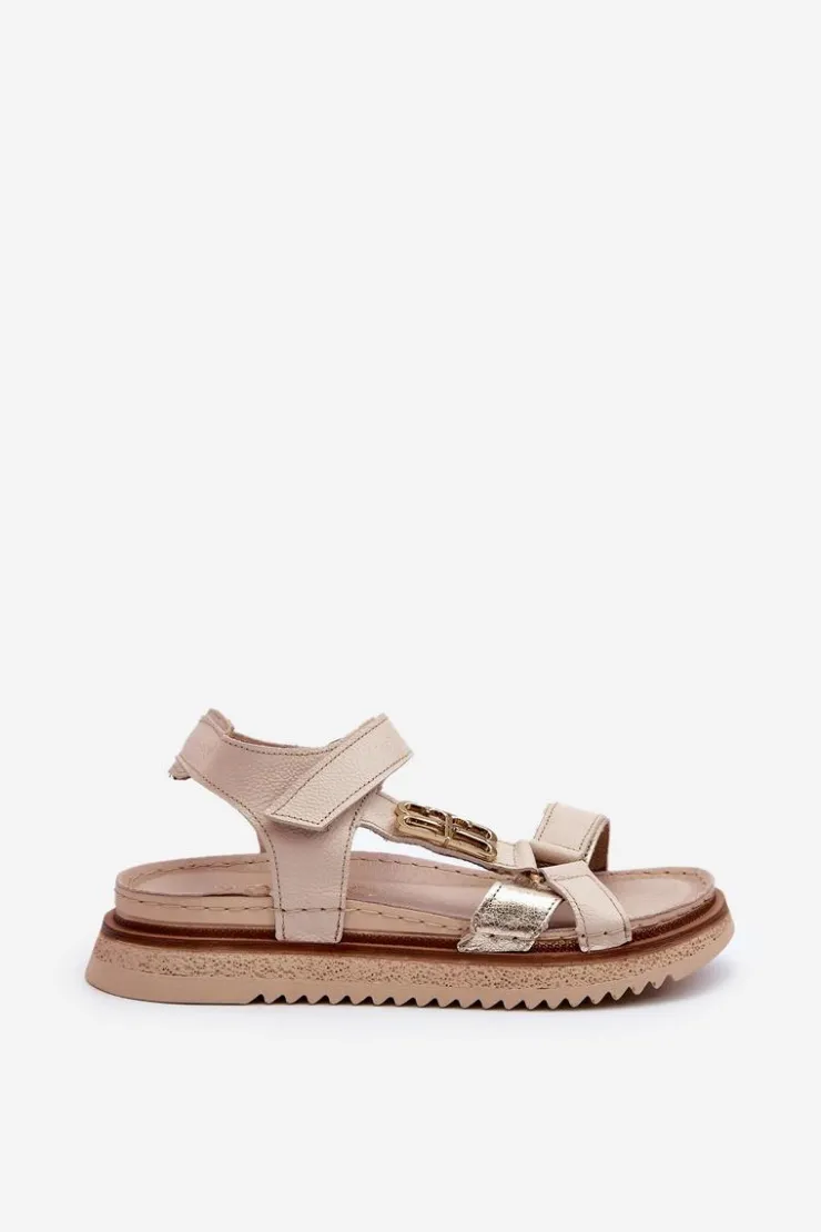 Damskie Maciejka Zazoo 50103 Damskie Skórzane Sandały Na Platformie Beżowe