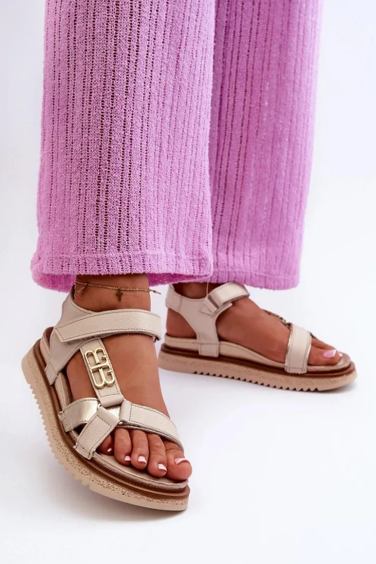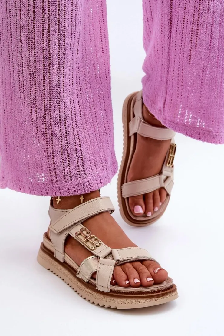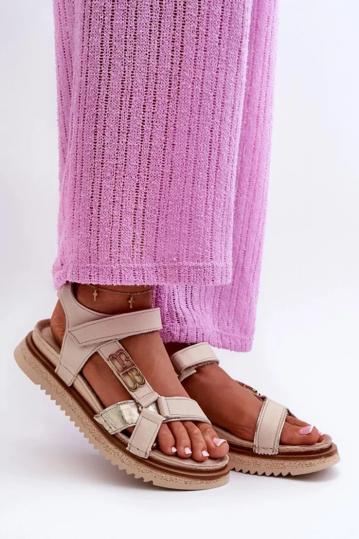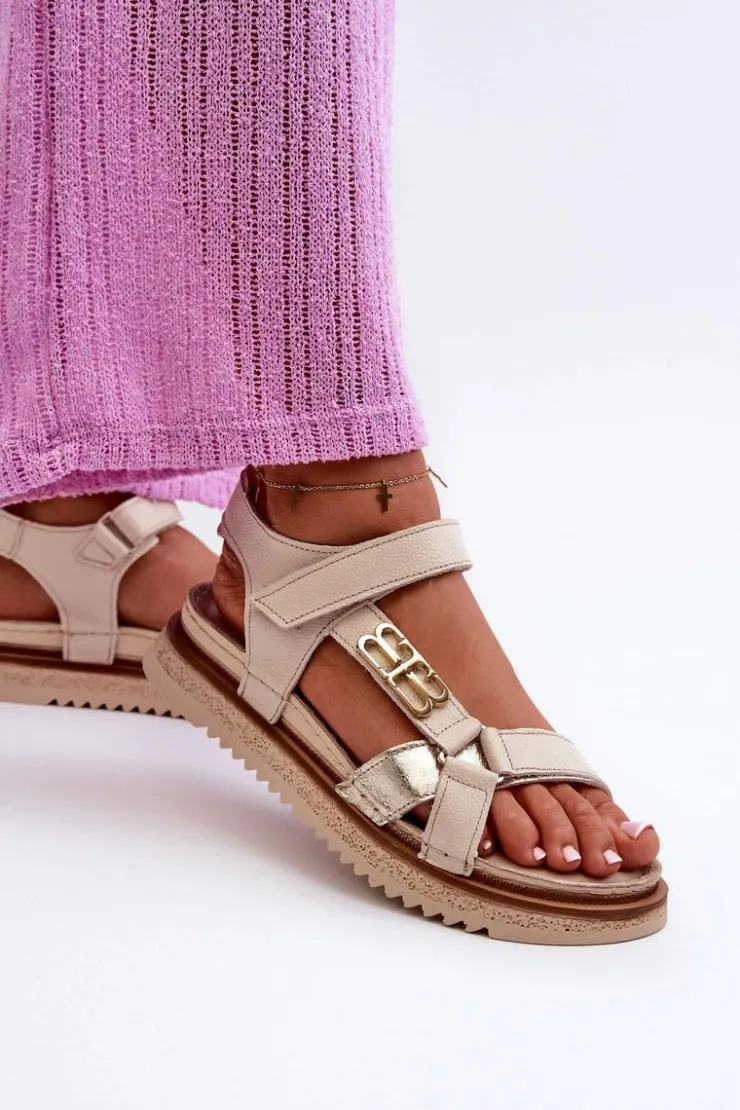 Damskie Maciejka Zazoo 50103 Damskie Skórzane Sandały Na Platformie Beżowe