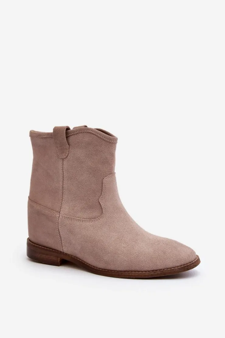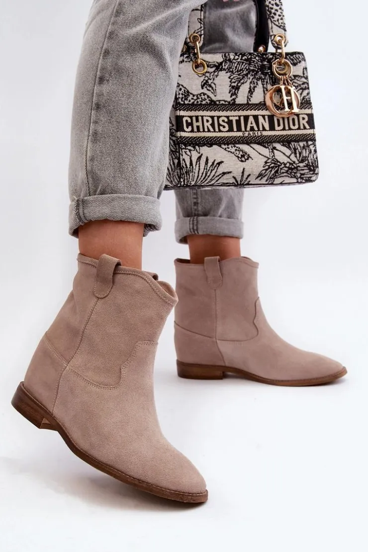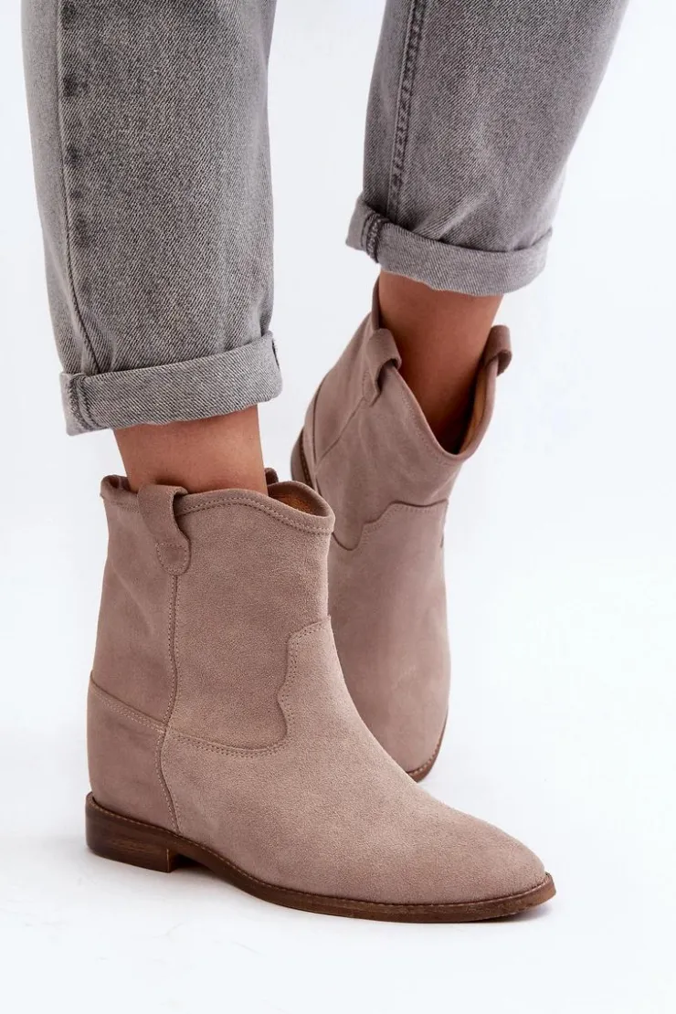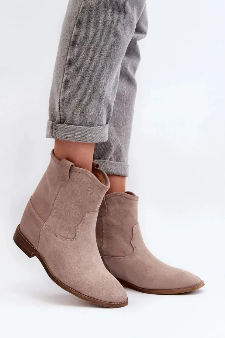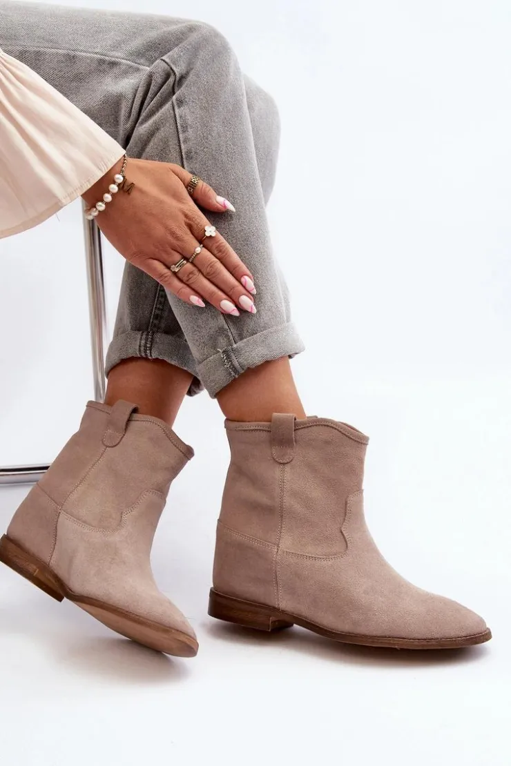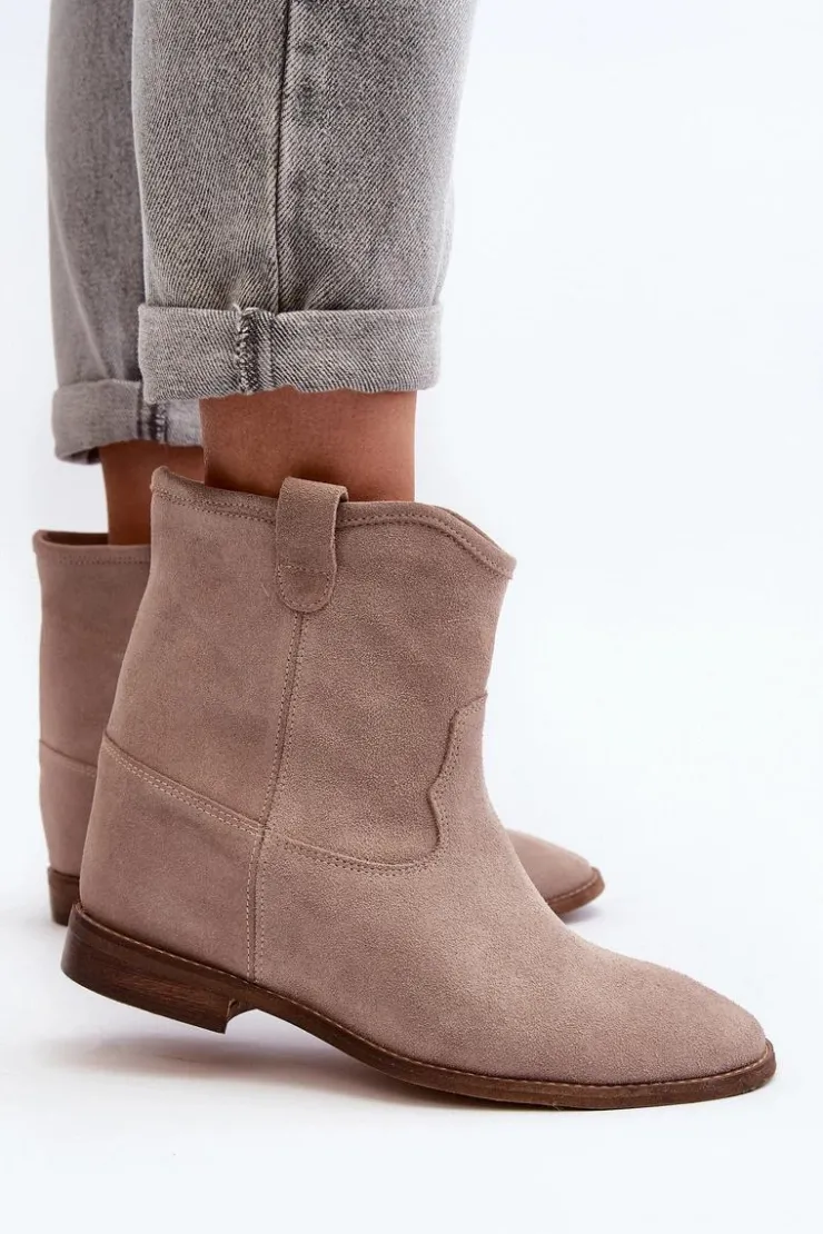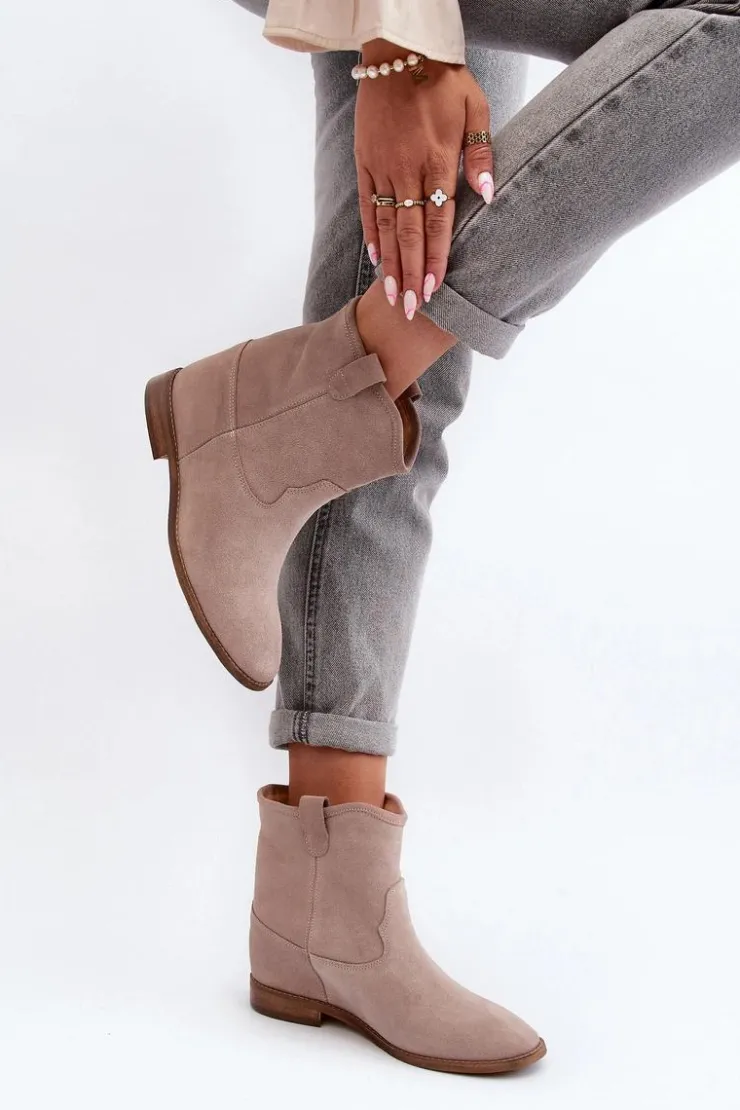 Botki damskie wykonane z naturalnego zamszu. Osadzone na płaskim obcasie z ukrytym koturnem. Noski zaokrąglone. Wkładka z naturalnej skóry zapewni komfort podczas użytkowania. Ten klasyczny model dopasujesz do wielu stylizacji! Przy wyborze rozmiaru prosimy kierować się tabelą rozmiarów