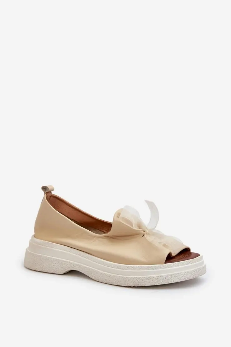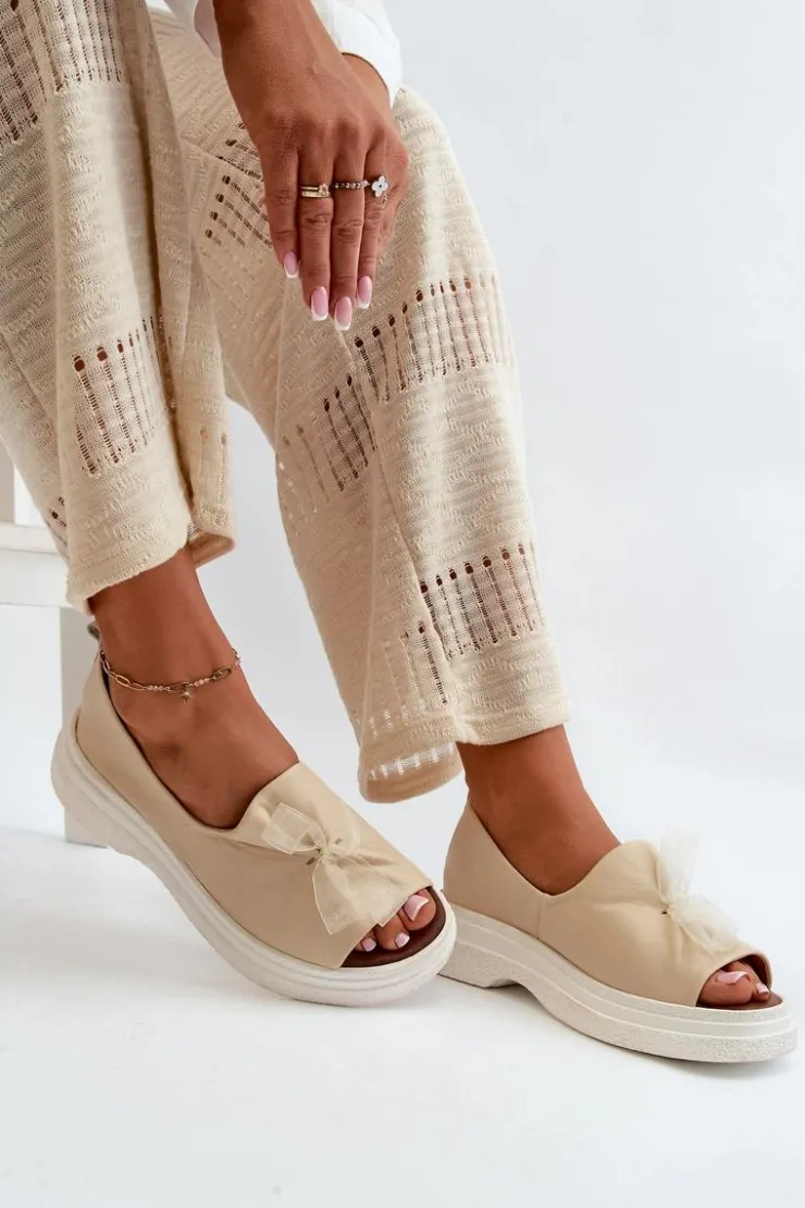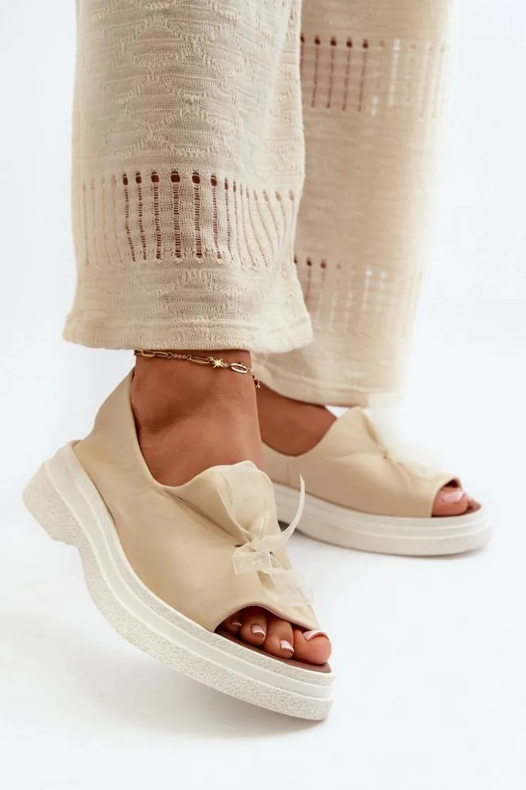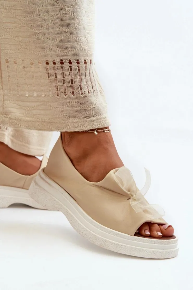 Damskie sandały wykonane ze skóry naturalnej to elegancki i komfortowy wybór na ciepłe dni. Osadzone na grubej, solidnej podeszwie, zapewniają stabilność i wygodę noszenia przez cały dzień. Miękka, skórzana wkładka dodatkowo zwiększa komfort użytkowania. Przód sandałów ozdobiony uroczą kokardką dodaje im subtelnego uroku i sprawia, że stanowią stylowy element każdej letniej stylizacji. Przy wyborze rozmiaru prosimy kierować się tabelą rozmiarów.
