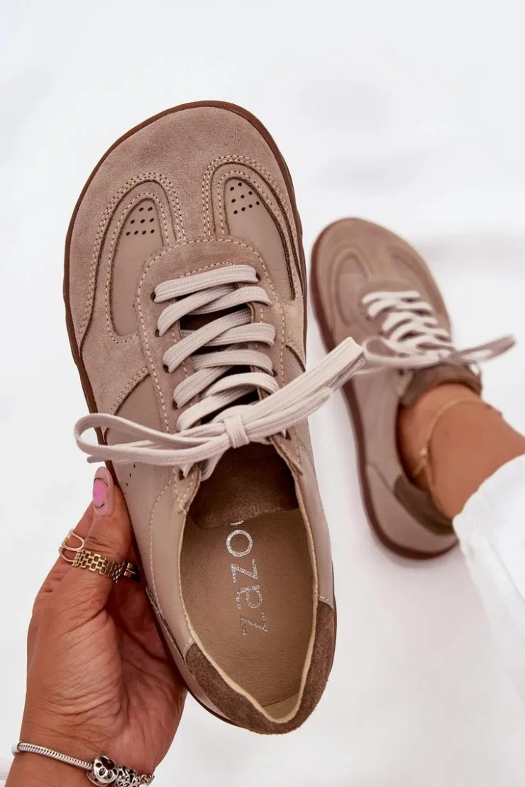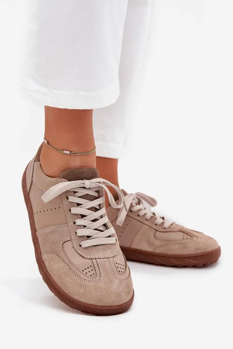 Trampki damskie, połączenie naturalnej skóry i zamszu, to idealne obuwie Barefoot, stworzone z myślą o naturalnym kontakcie stopy z podłożem. Dzięki cienkiej, elastycznej podeszwie, buty pozwalają na swobodny ruch i lepsze czucie nawierzchni. Model Barefoot wspiera naturalny ruch stopy, co korzystnie wpływa na jej zdrowie. Lekka i wygodna konstrukcja sprawia, że są to buty doskonałe do codziennego użytku, szczególnie dla osób, które stawiają na komfort i zdrowie swoich stóp. Przy wyborze rozmiaru prosimy sugerować się tabelą rozmiarów.