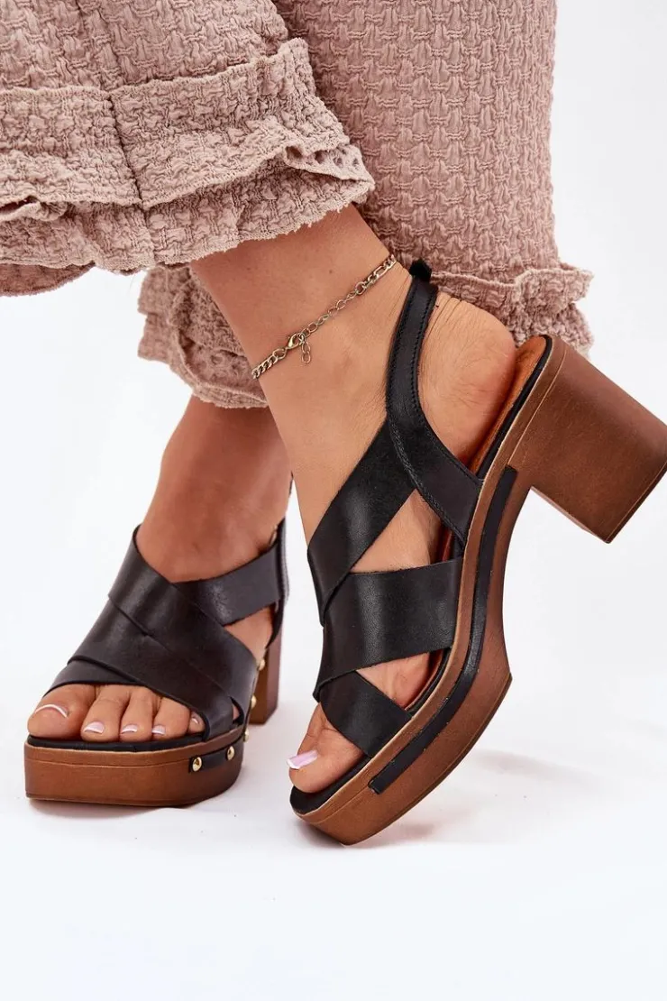 Sandały damskie z naturalnej skóry, osadzone na obcasie w formie słupka, to elegancka propozycja na wyjątkowe okazje. Zapinane na sprzączkę z regulowanym paskiem, umożliwiają łatwe dopasowanie do stopy, zapewniając komfort przez cały dzień. Idealne na wieczorne wyjścia, wesela czy inne formalne uroczystości. Przy wyborze rozmiaru prosimy sugerować się tabelą rozmiarów.
