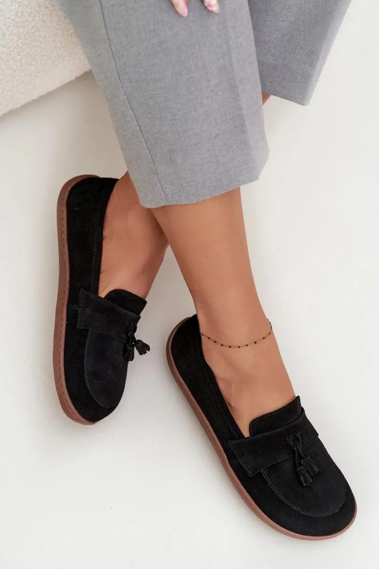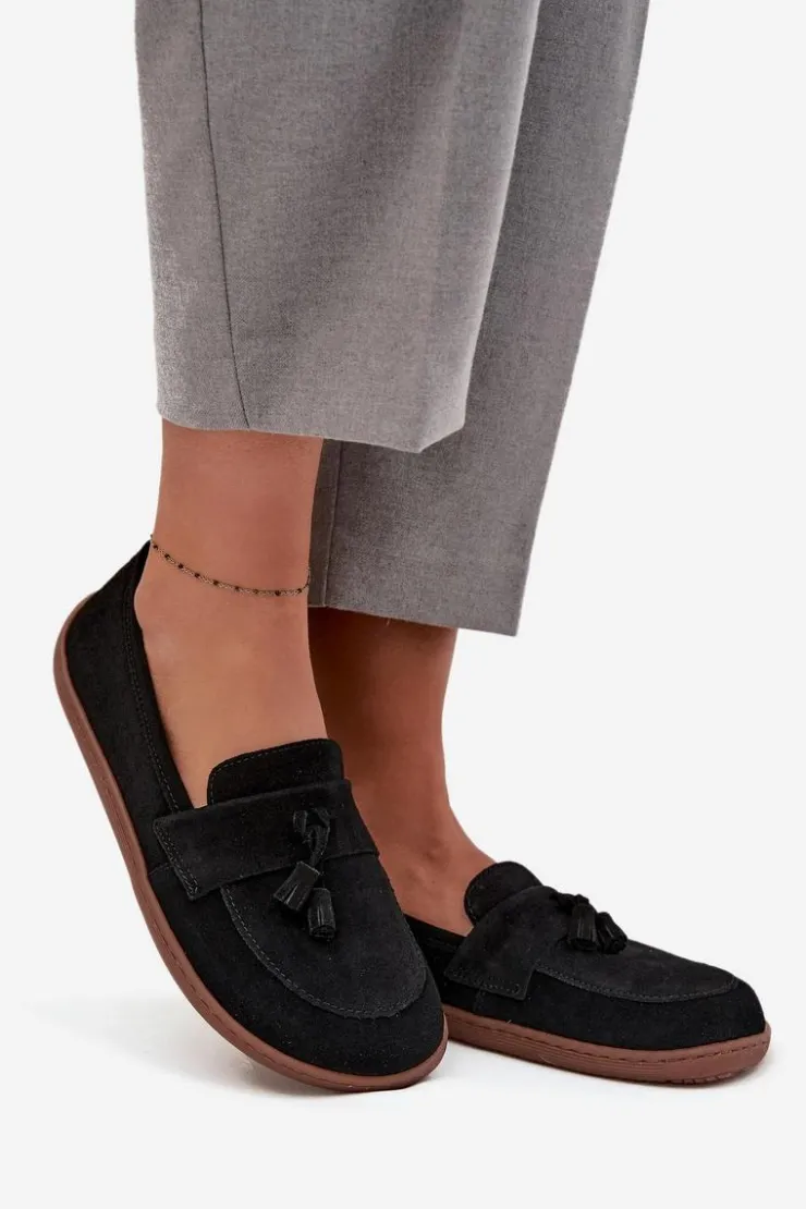Mokasyny damskie typu barefoot to propozycja dla osób ceniących naturalny komfort i swobodę ruchu. Wykonane z miękkiego, naturalnego zamszu, doskonale dopasowują się do kształtu stopy, zapewniając przyjemne uczucie lekkości i wygody podczas noszenia. Z przodu cholewkę zdobi pasek z dwoma frędzelkami, które dodają całości subtelnego uroku i stylowego charakteru. To idealne buty na co dzień – sprawdzą się zarówno w luźnych, casualowych stylizacjach, jak i w bardziej eleganckich zestawach. Przy wyborze rozmiaru prosimy sugerować się tabelą rozmiarów.