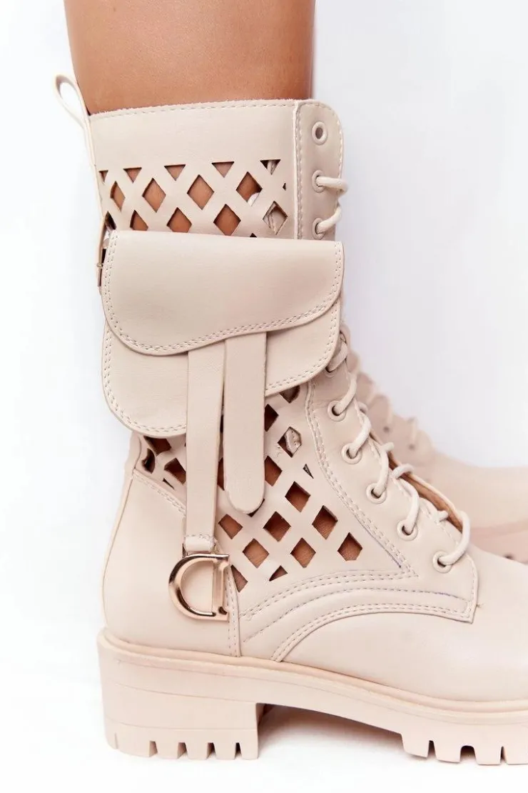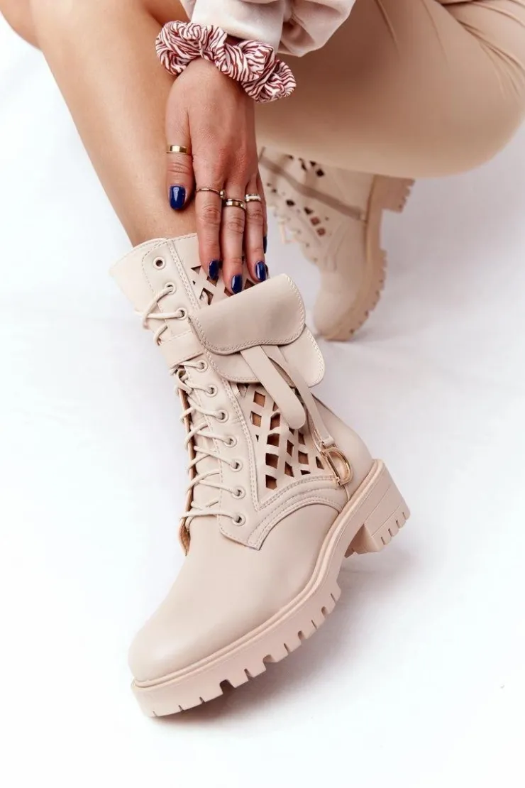 Ażurowe botki z odpinaną nerką. Workery w całości wykonane są z eko skóry. Botki świetnie wpiszą się w stylizacje glam rock lub grunge. Koniecznie sprawdź całą naszą kolekcję damskich botków! Przy wyborze rozmiaru prosimy sugerować się tabelą rozmiarów.