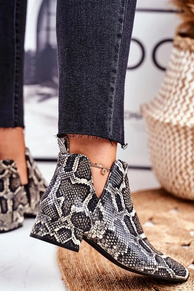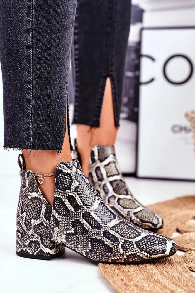 Discount Boto Botki Damskie Z Wycięciami Skórzane Wężowe Visconi 2625804