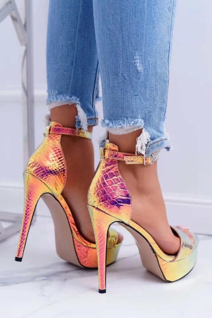 Discount Boto Czółenka Damskie Na Szpilce Platformie Benzynowe Złote ShakeIt