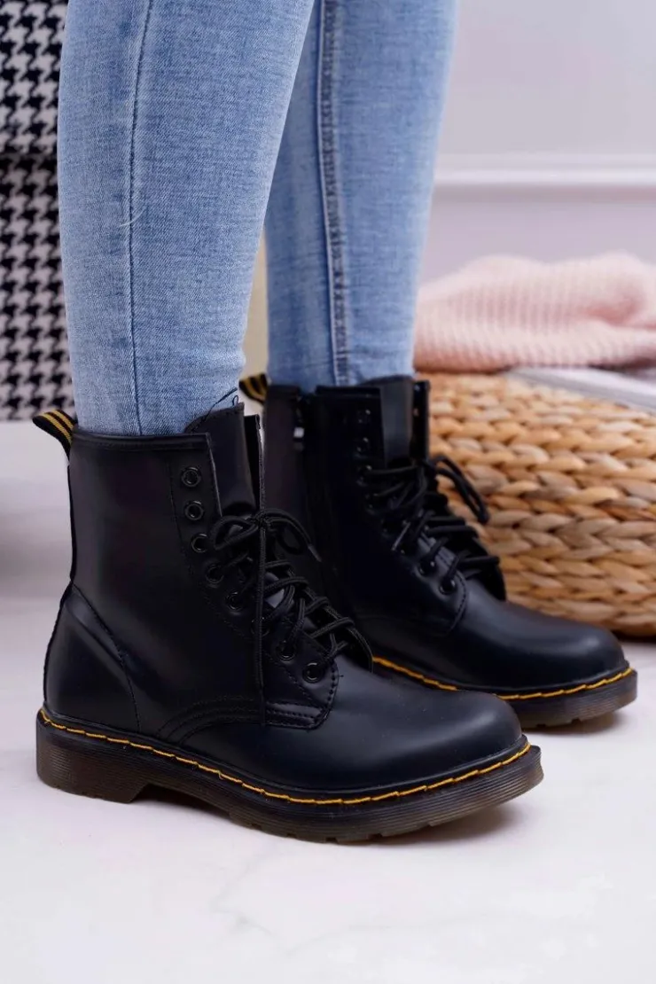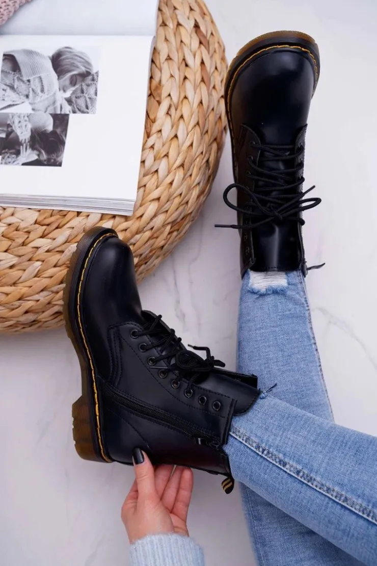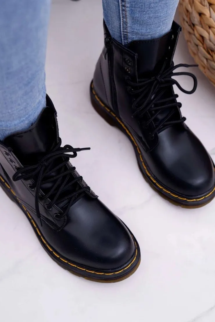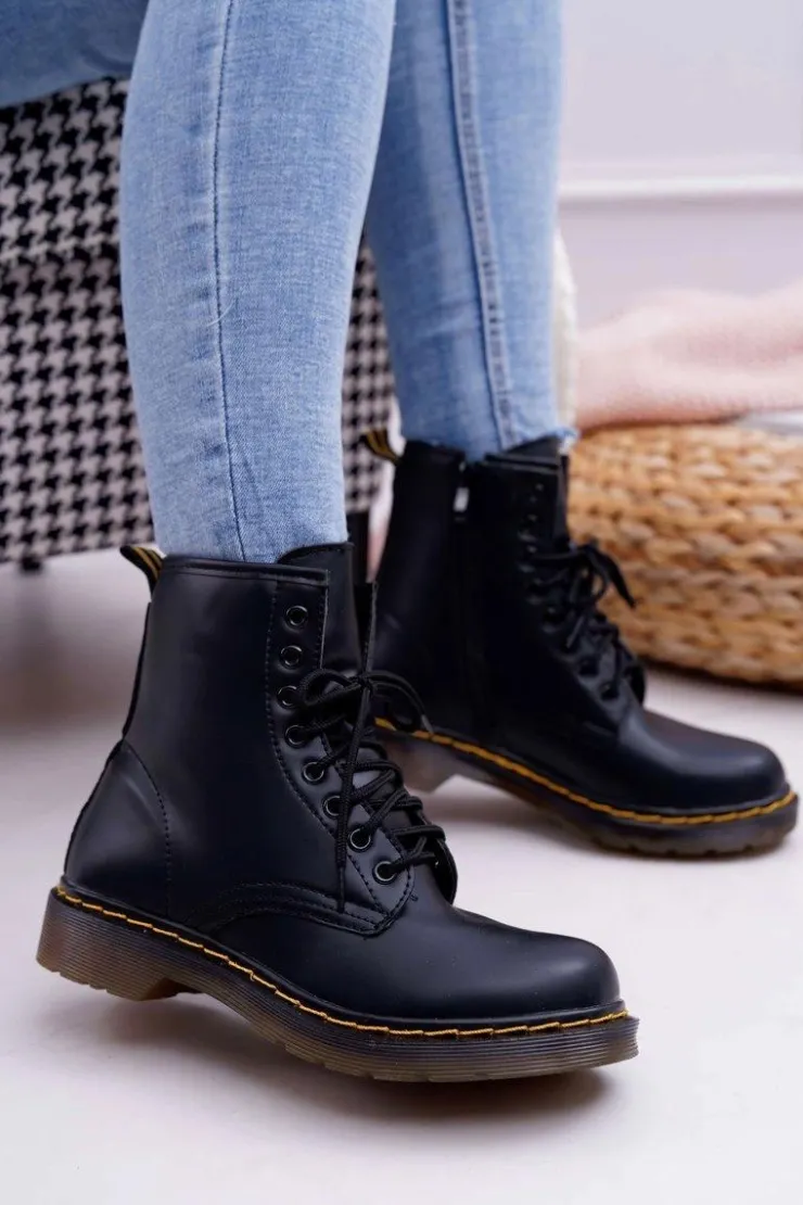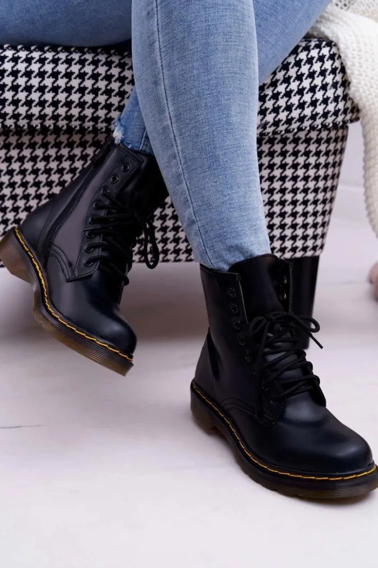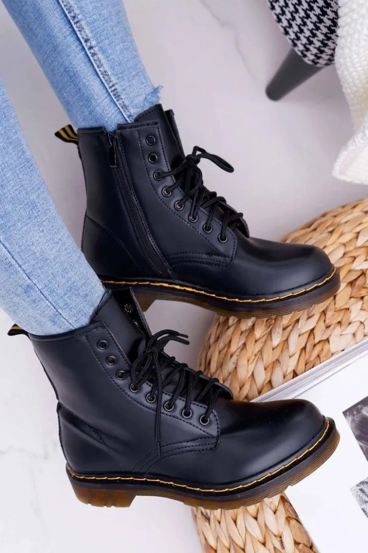 Discount Boto Damskie Botki Trapery Glany Czarne Gangsta