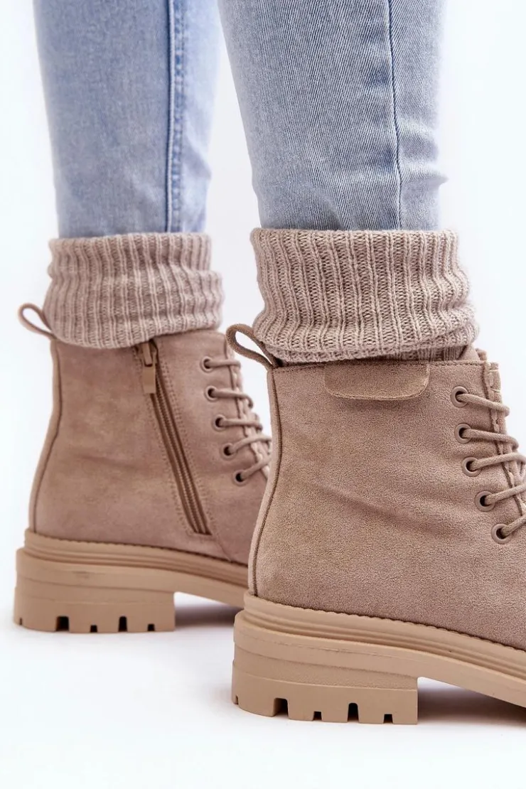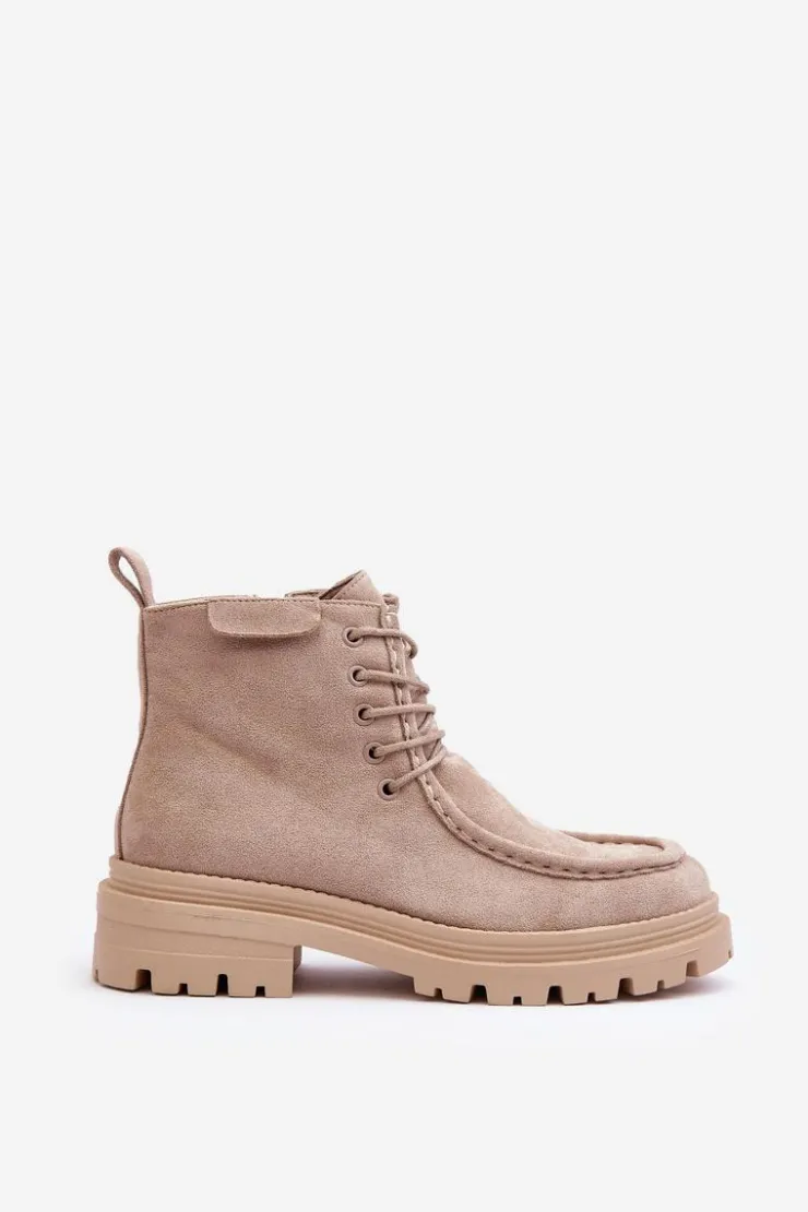 Trapery damskie wykonane z eko zamszu. Zapinane na suwak z boku. Wewnątrz ocieplone kocem obuwniczym. Płaski obcas oraz platforma zapewnia stabilność na każdym kroku. Z przodu dodatkowe sznurowanie. Noski zaokrąglone. Zapiętek usztywniony. Buty idealnie sprawdzą się w zimowe dni! Przy wyborze rozmiaru prosimy sugerować się tabelą rozmiarów.