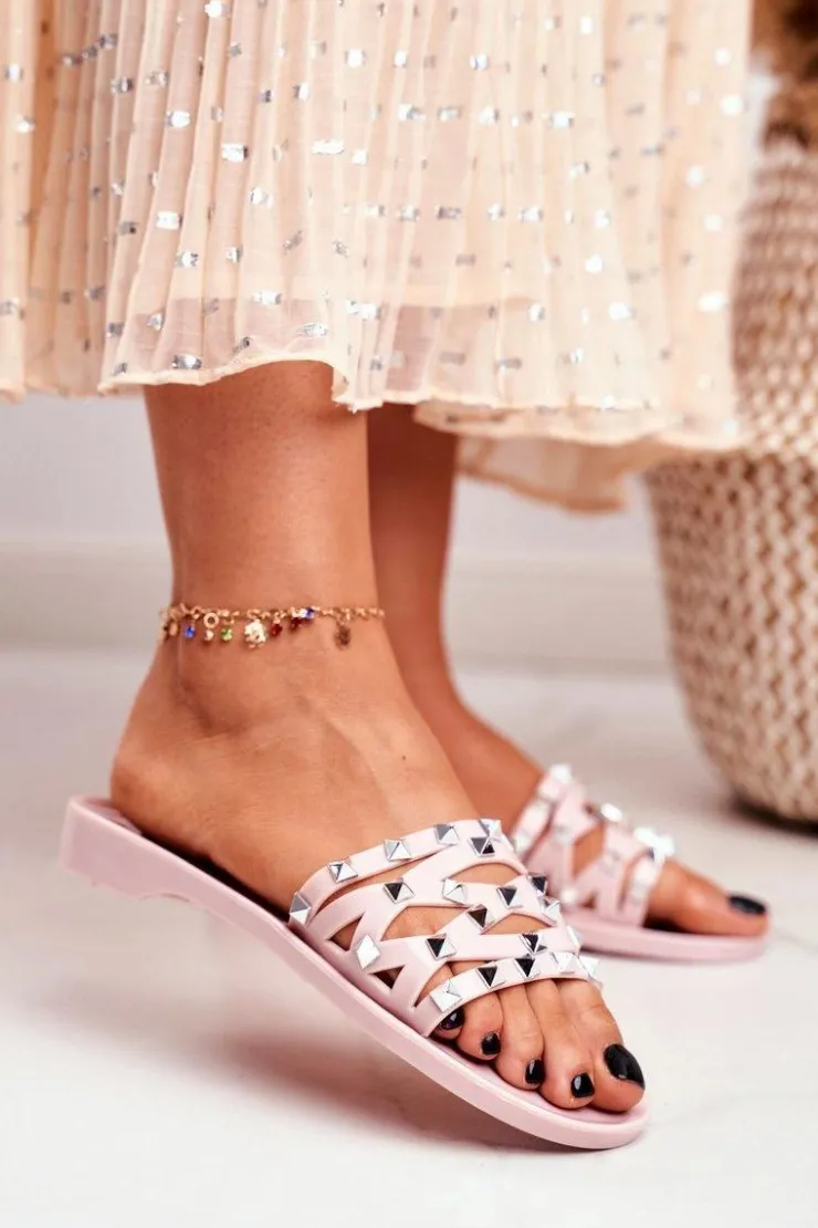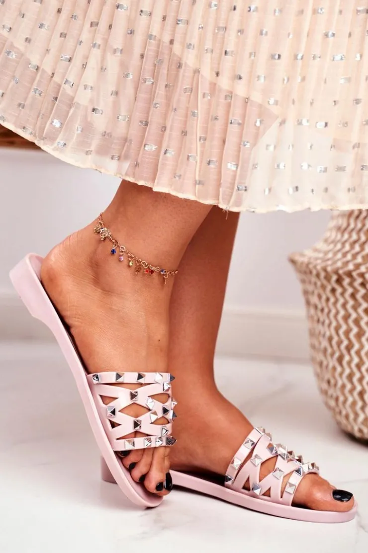 Discount Boto Damskie Klapki Różowe Gumowe Ćwieki Patty