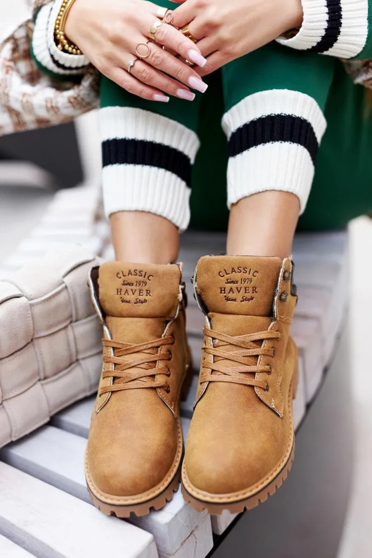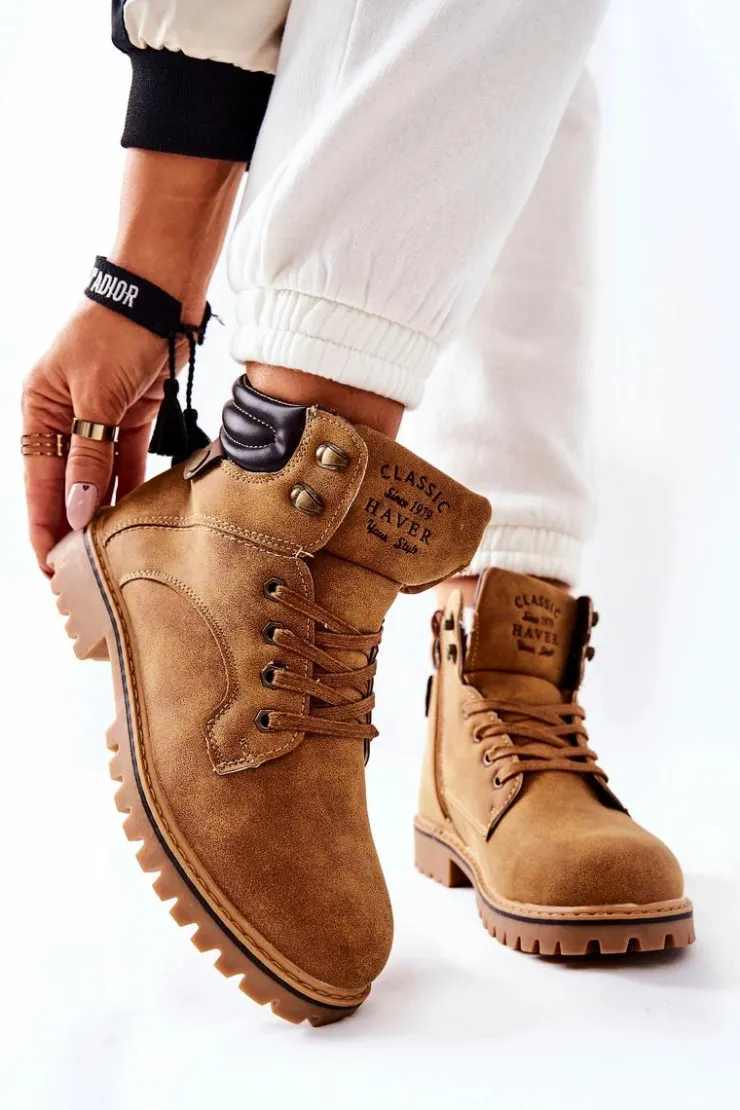 Trapery wykonane zostały z eko skóry. W środku posiadają ocieplenie w postaci miękkiego futerka. Zapinane na suwak oraz wiązane. Idealne na długie spacery w chłodne dni. Buty posiadają przeszycia po bokach i na górze cholewki. Ozdobne tłoczenie na języku. Antypoślizgowa podeszwa. Przy wyborze rozmiaru prosimy sugerować się tabelą rozmiarów.