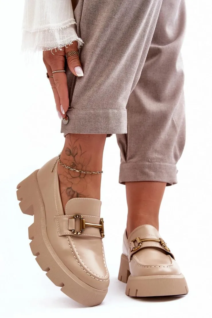 Discount Boto Damskie Półbuty Loafery Z Ozdobą Beżowe Peuria