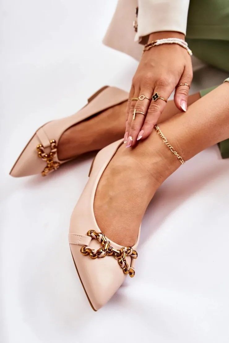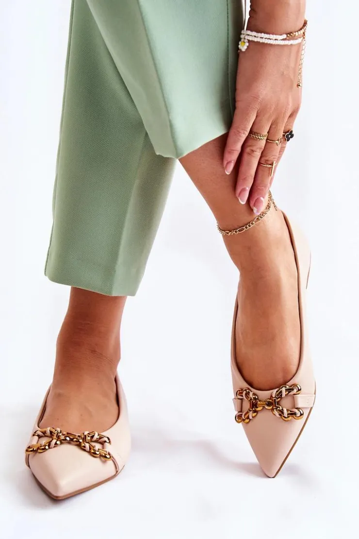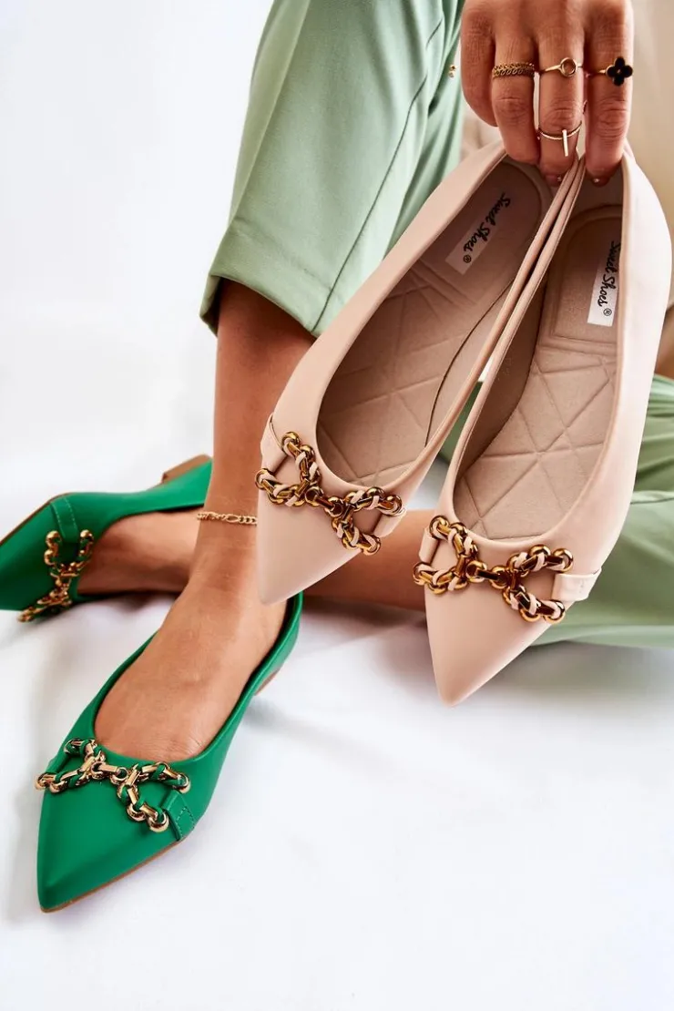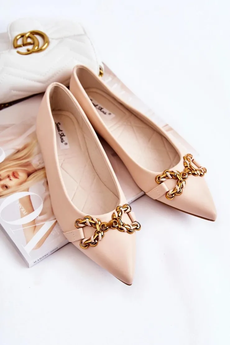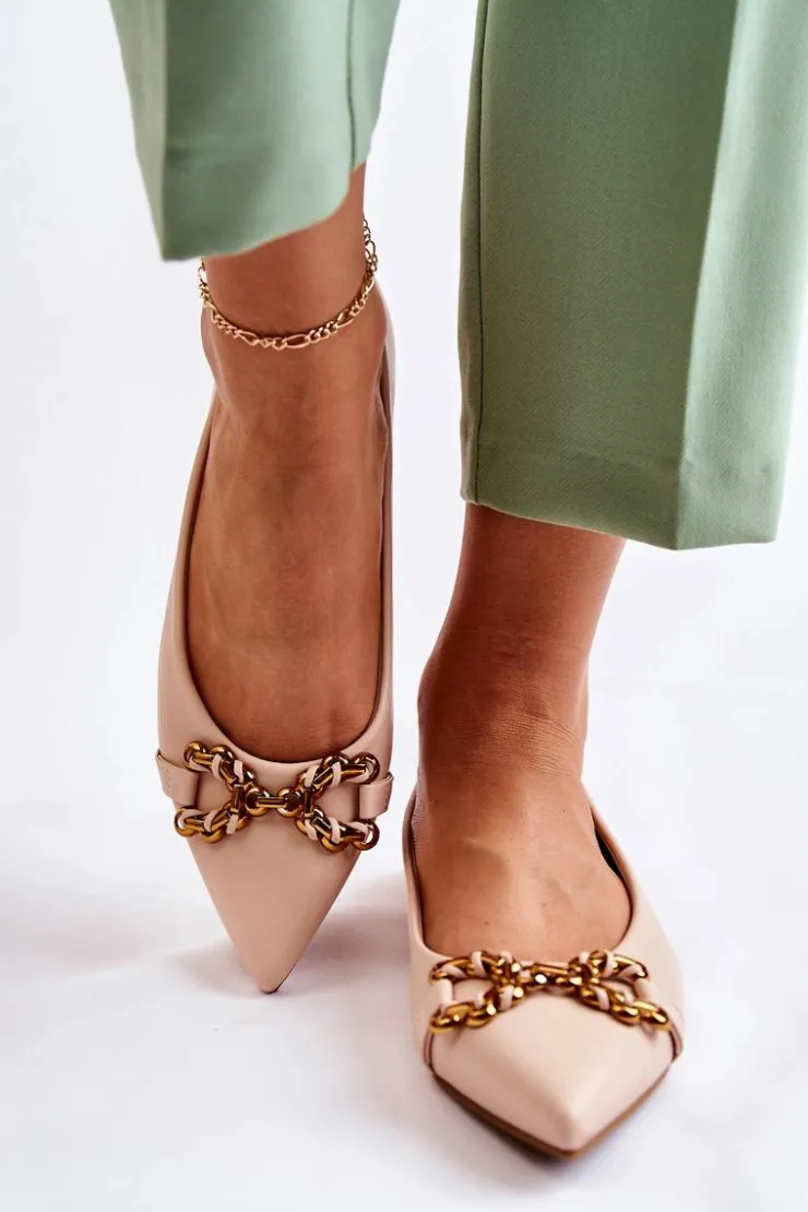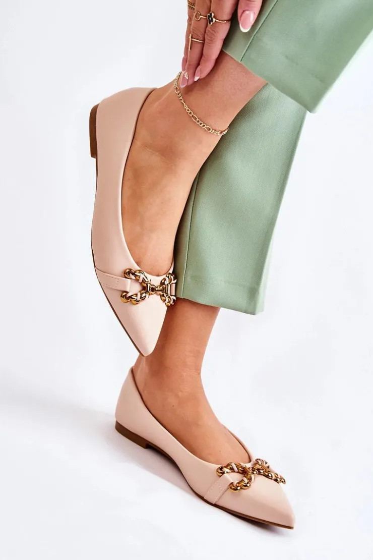 Damskie baleriny z ozdobnym elementem z tworzywa sztucznego na przodzie. Buty wykonane są w całości z eko skóry. Baleriny są niezwykle wygodne, dzięki eko skórzanej wkładce. Posiadają nosek w szpic. Ten model balerin dopełni wiele Twoich stylizacji. Osadzone na płaskim obcasie z antypoślizgową podeszwą. Koniecznie powinnaś sprawdzić także pozostałą kolekcję balerinek! Przy wyborze rozmiaru prosimy sugerować się tabelą rozmiarów.
