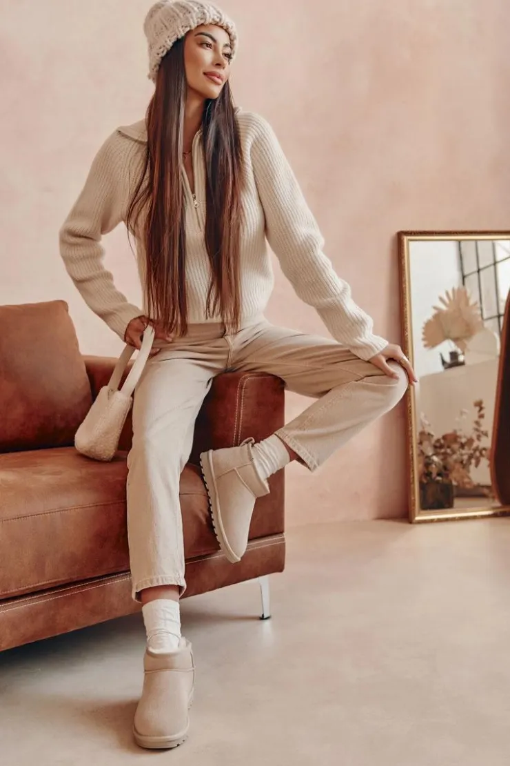 Klasyczne śniegowce idealnie sprawdzą się podczas chłodnych dni. Wykonane z wysokiej jakości naturalnych skór. Wnętrze butów zostało ocieplone grubym futerkiem ekologicznym. Ten klasyczny model dopasujesz do wielu stylizacji. Botki posiadają gumową platformę, która świetnie odizoluje od podłoża i jest dodatkowo antypoślizgowa. Powinnaś mieć ten model w swojej szafie! Przy wyborze rozmiaru prosimy sugerować się tabelą rozmiarów.