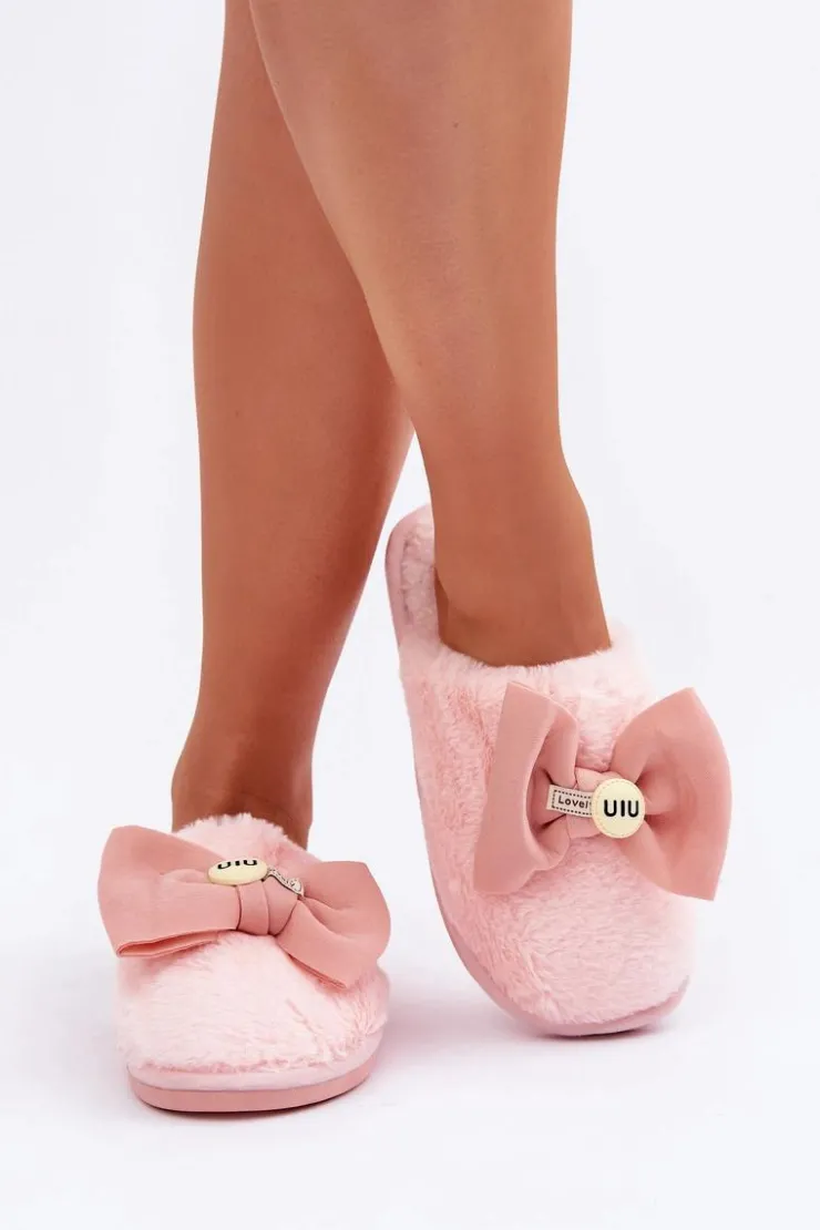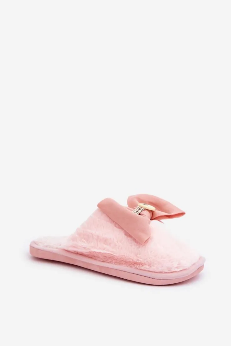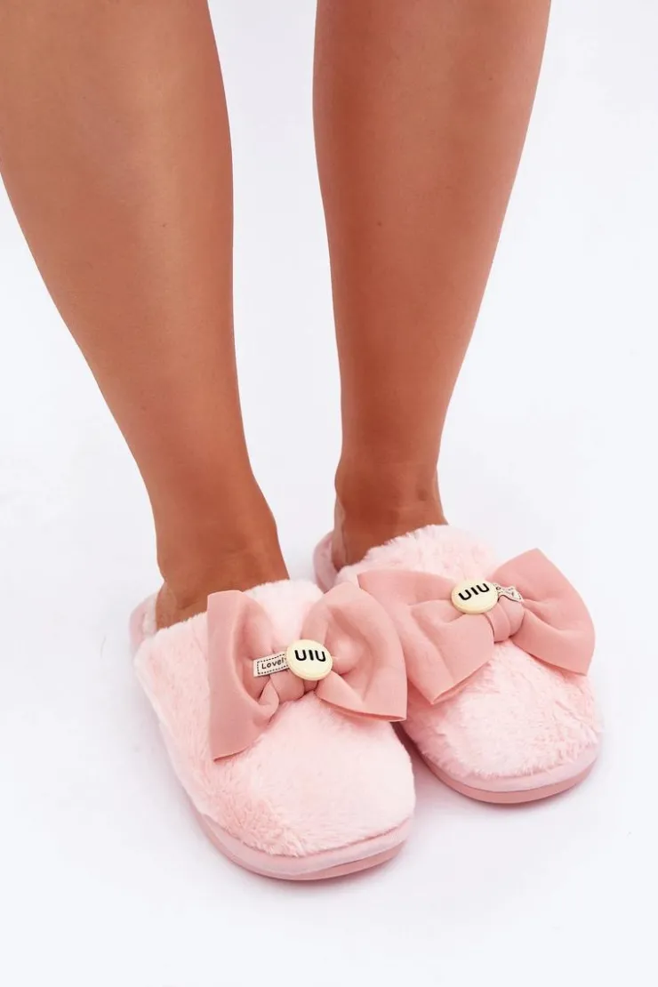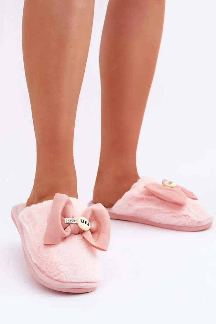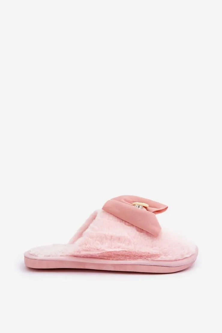 Discount Boto Kapcie Damskie Z Futerkiem I Kokardą Różowe Olfedi Różowy