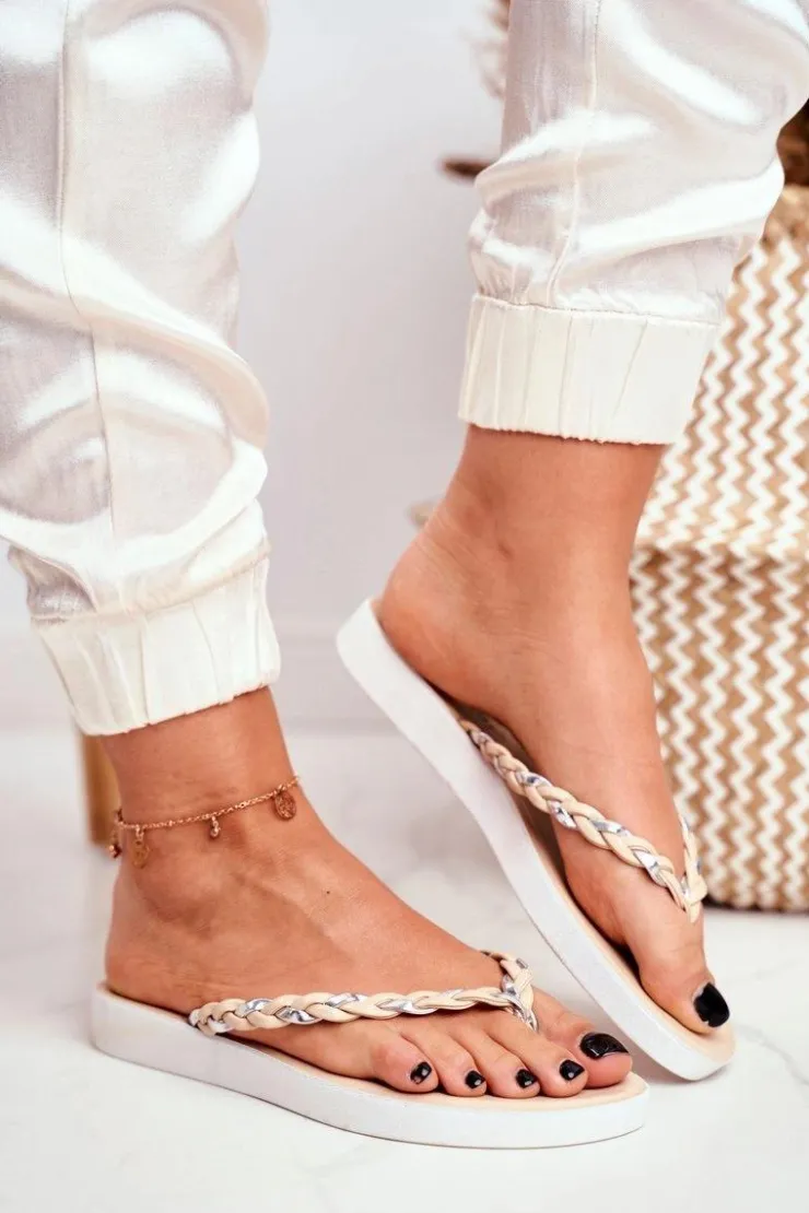 Discount Boto Klapki Damskie Japonki Pleciony Pasek Beżowe Peggie