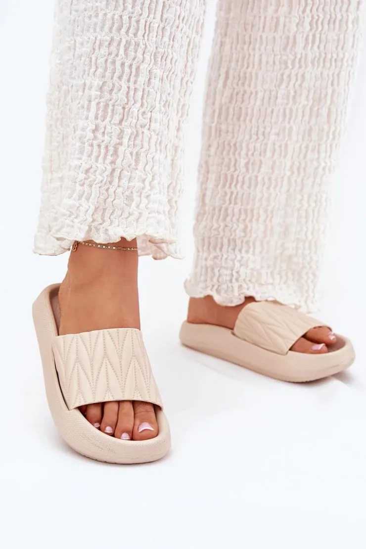 Klapki damskie z piankowego tworzywa to lekka i wygodna opcja na ciepłe dni. Model osadzony na platformie zapewnia komfort i stabilność. Idealne na basen, plażę oraz dni spędzone w ogrodzie, łączą funkcjonalność z prostym, ale stylowym wyglądem. Przy wyborze rozmiaru prosimy sugerować się tabelą rozmiarów.