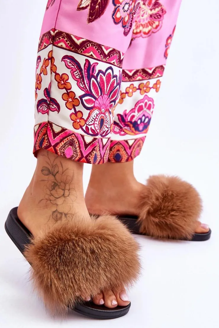 Klapki damskie z naturalnym futerkiem. Podeszwa wykonana jest z gumowego, lekkiego tworzywa. Delikatnie profilowana wkładka zadba o Twój komfort.