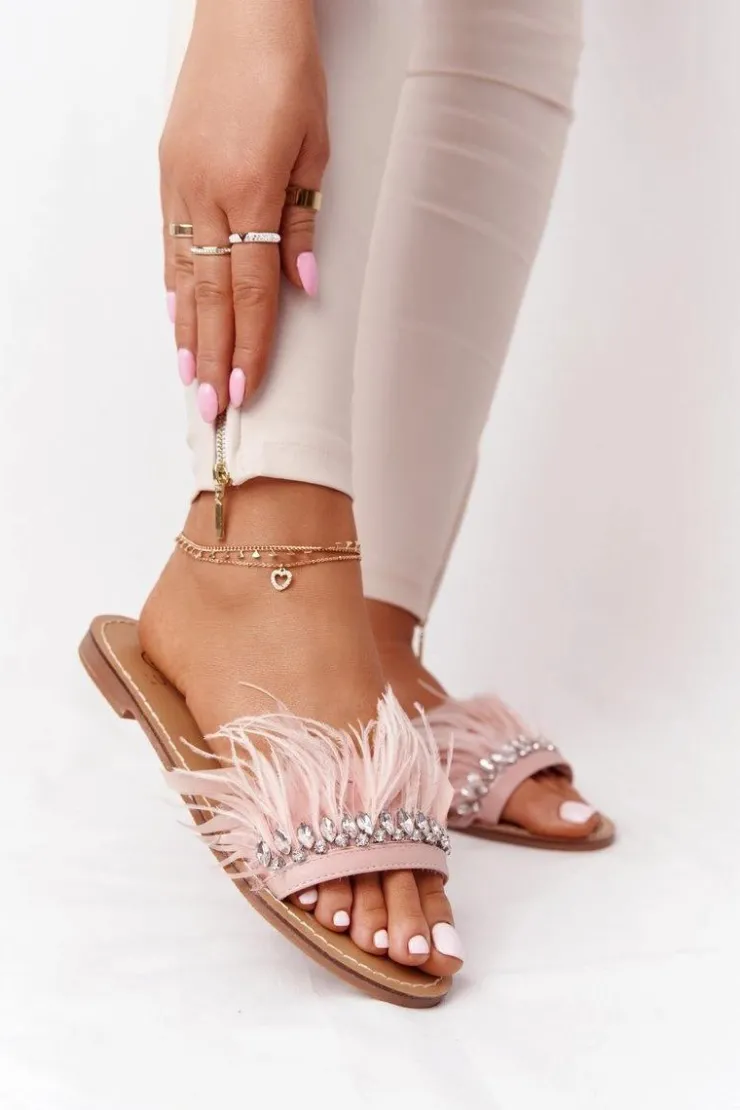 Klapki damskie marki LU BOO ozdobione piórami oraz srebrnymi kamieniami. Klapki to świetna propozycja dla kobiet ceniących sobie komfort w letnie dni! Koniecznie sprawdź całą naszą kolekcję butów marki LU BOO. Przy wyborze rozmiaru prosimy sugerować się tabelą rozmiarów.