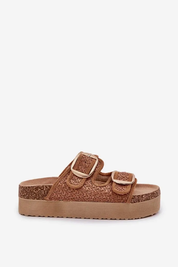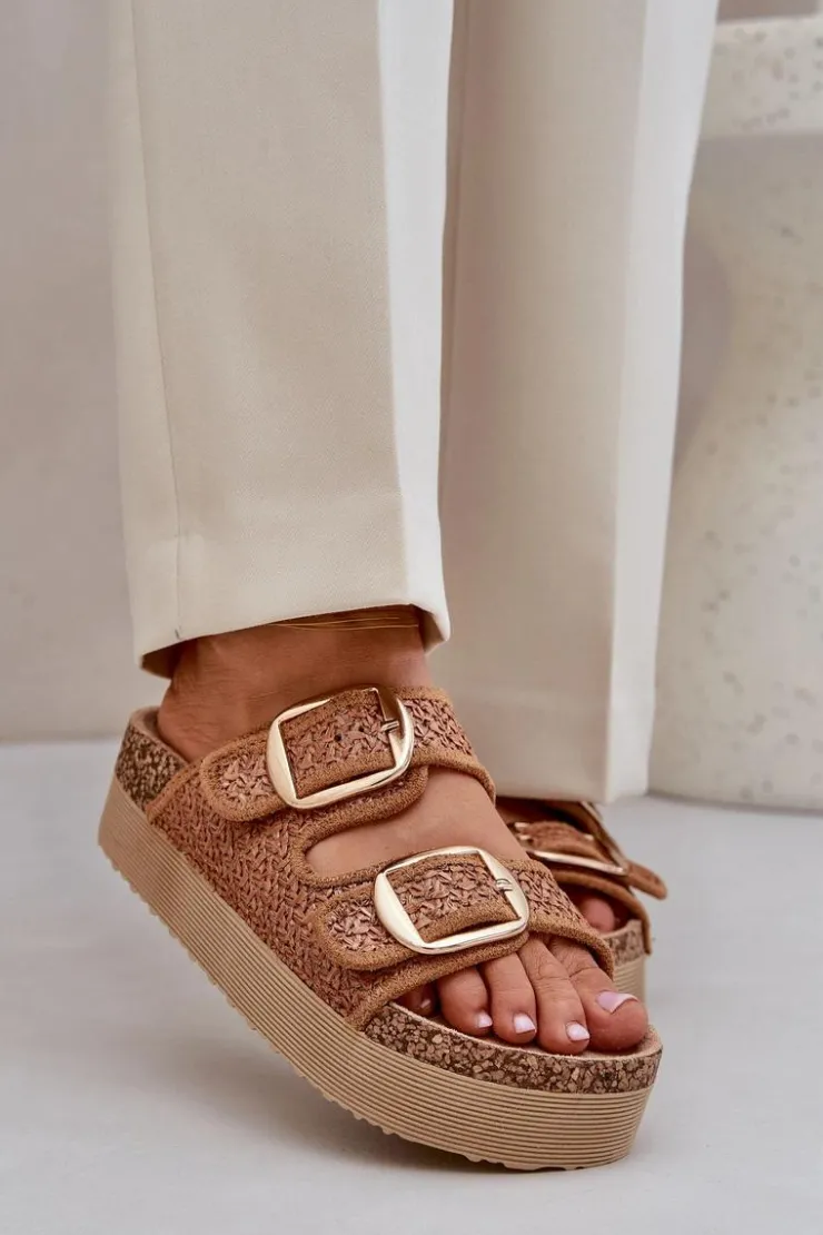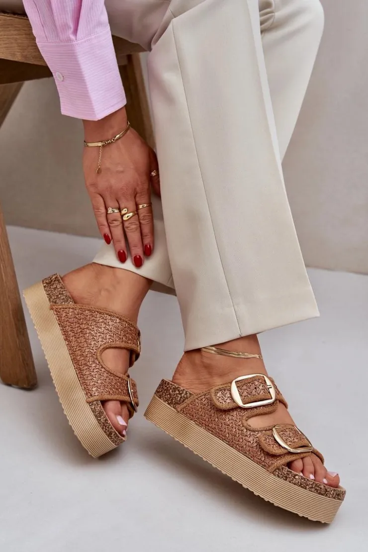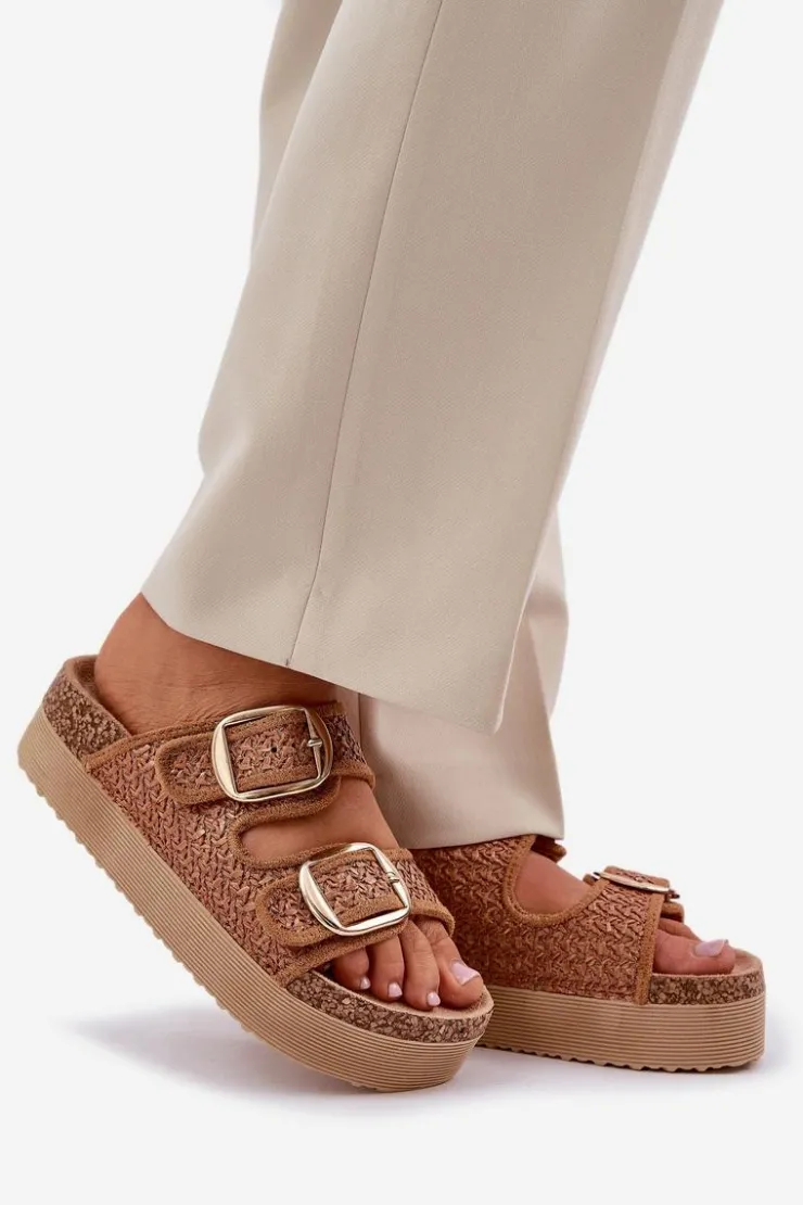 Discount Boto Klapki Z Plecionką I Klamrami Na Masywnej Platformie Camel Aralissea