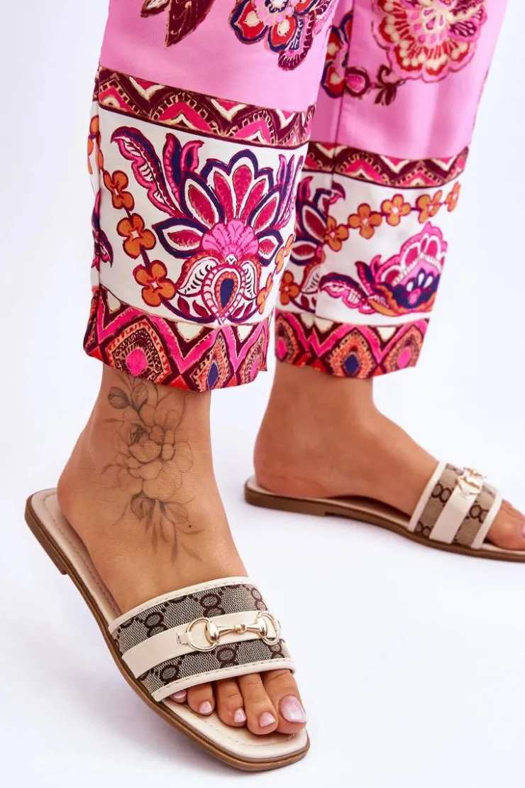 Klasyczne klapki zostały wykonane z połączenia eko skóry oraz tkaniny. Model ten jest klasycznie wsuwany z otwartym, kwadratowym noskiem. Osadzone na płaskim obcasie. Miękka wkładka została także wykonana z eko skóry. Ten model świetnie sprawdzi się na co dzień! Przy wyborze rozmiaru prosimy sugerować się tabelą rozmiarów.